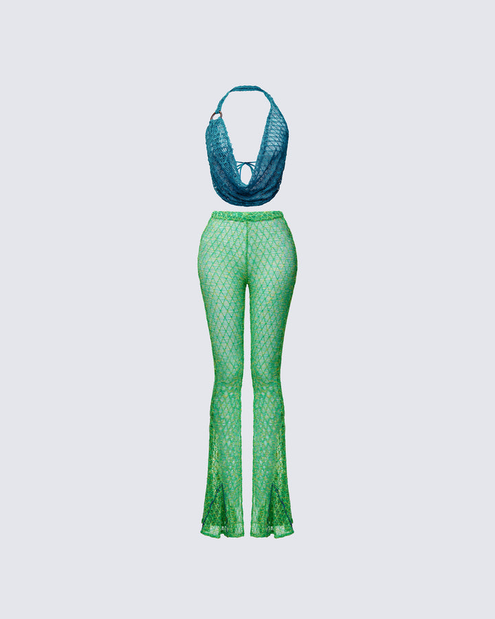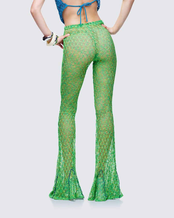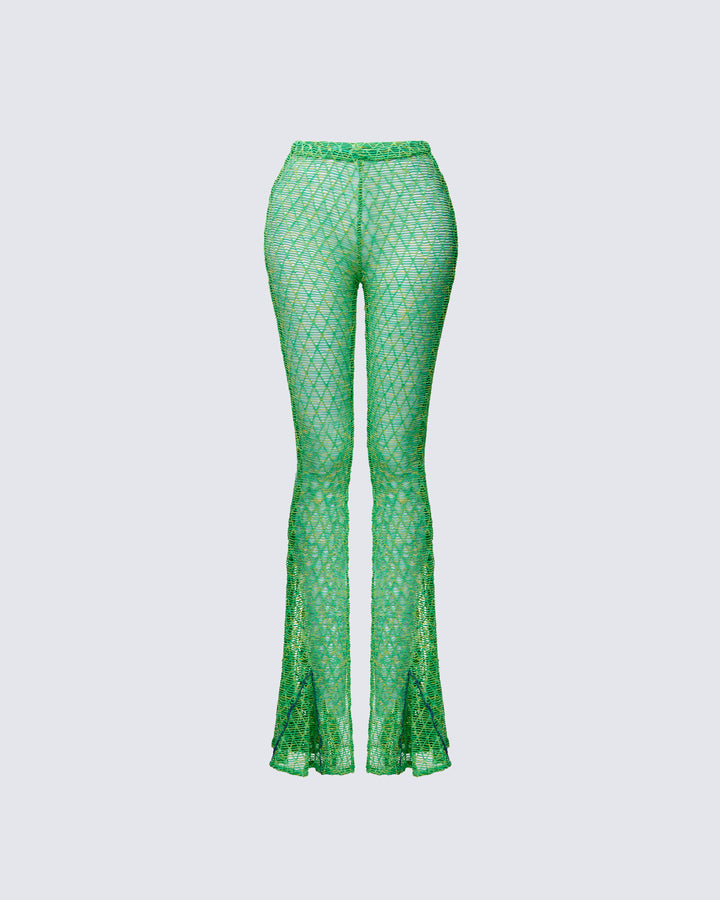 Zayla Green Net Flare Leg Trousers