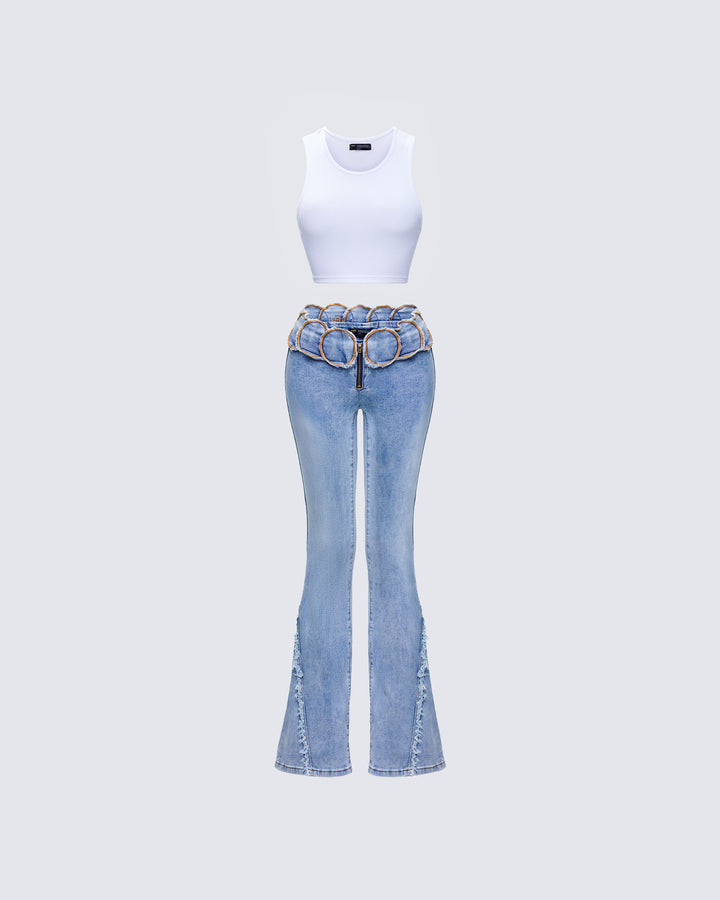 Sophelle Distressed Acid Wash Denim Mini Skirt