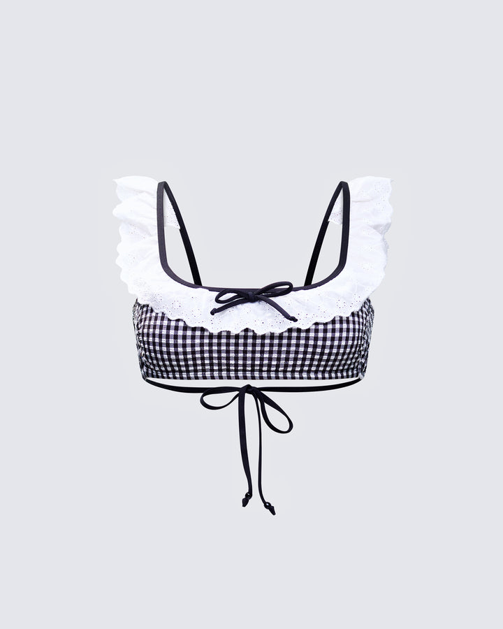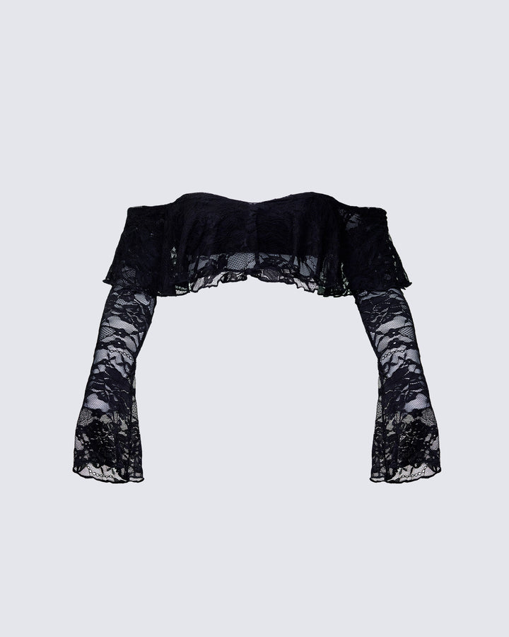 Rina Black Lace Asymmetrical Hem Ruffle Skirt