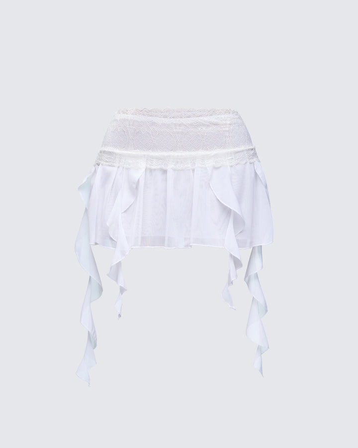 Aurelia Black Printed Mesh Ruffle Mini Skirt