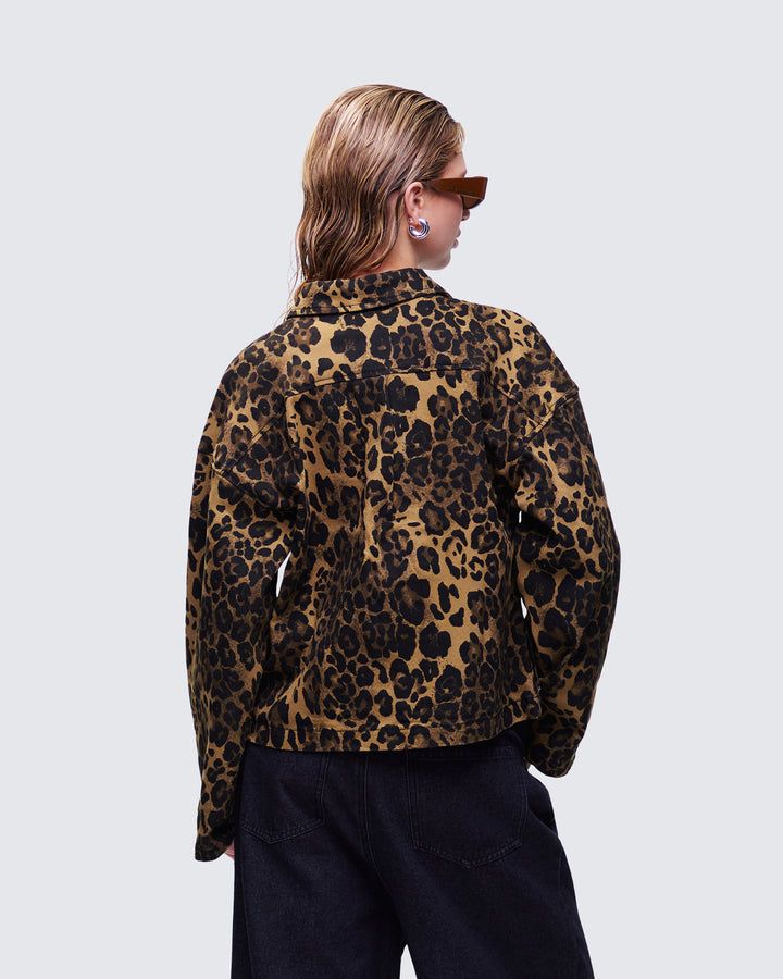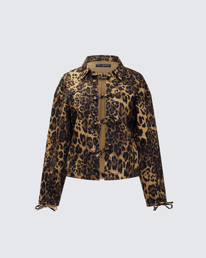 Lucretia Leopard Bow Tied Twill Shirt Jacket