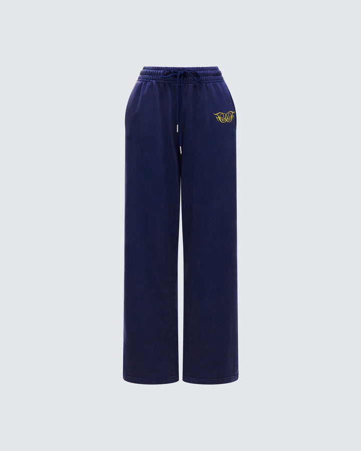 Kamilah Blue Acid Wash Wide Leg Sweat Pant