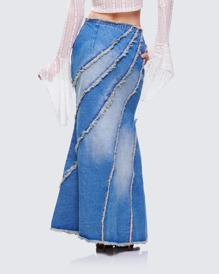 Briony Blue Denim Frayed Maxi Skirt