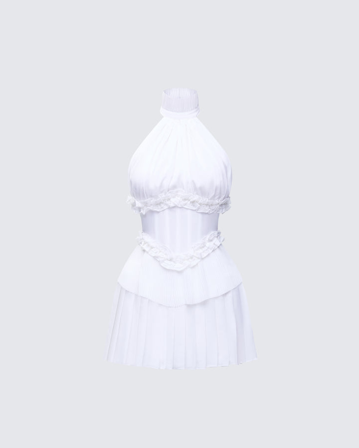 Anabeth Ivory Pleated Mini Dress