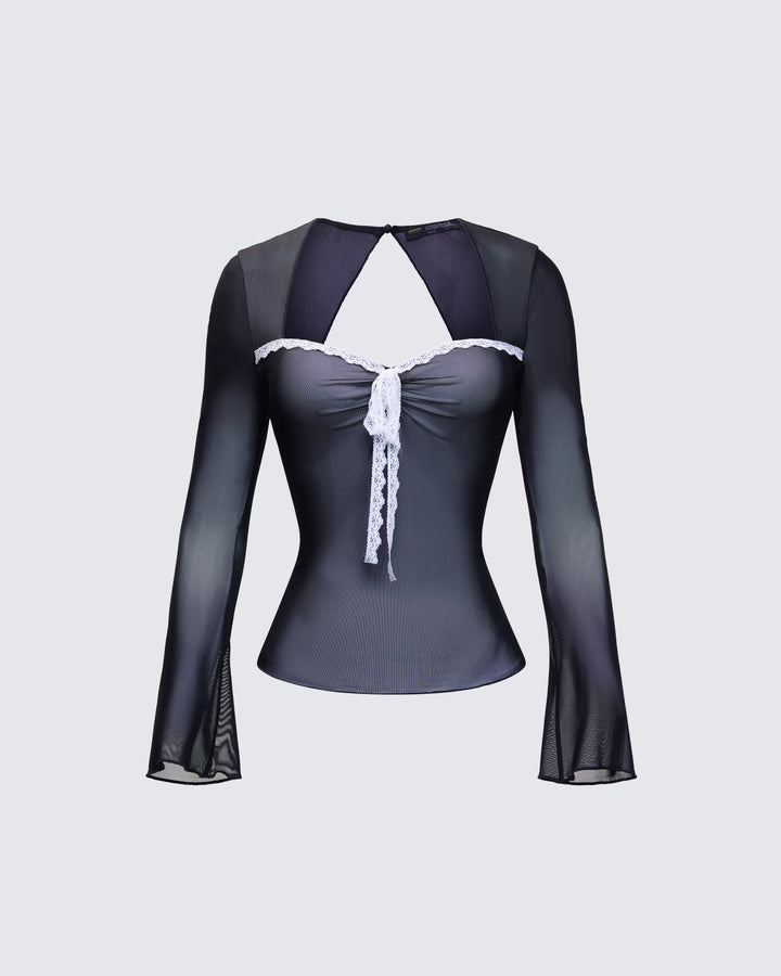 Damaris Black Long Sleeve Bow Trim Top