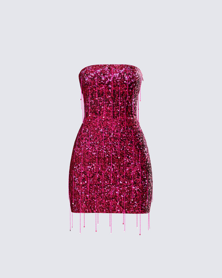 Darcie Pink Hand Beaded Sequin Mini Dress