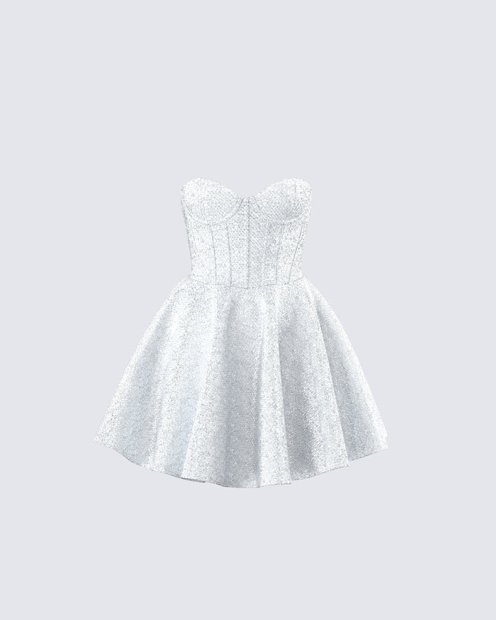 Clarisse Baby Blue Hand Beaded Rhinestone Dress