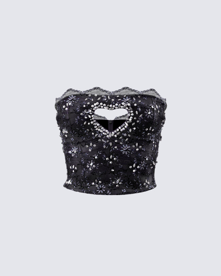 Regular price $78.00Regular priceUnit price / perSale price $78.00Love Hand Beaded Rhinestone Black Ruffle Short