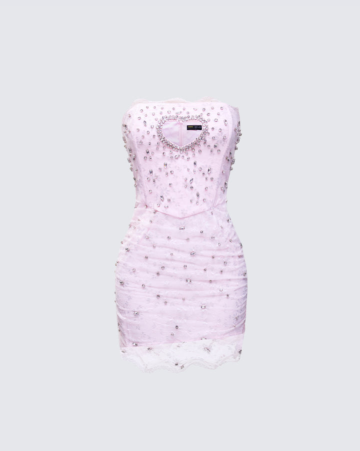 Clarisse Pink Hand Beaded Rhinestone Dress
