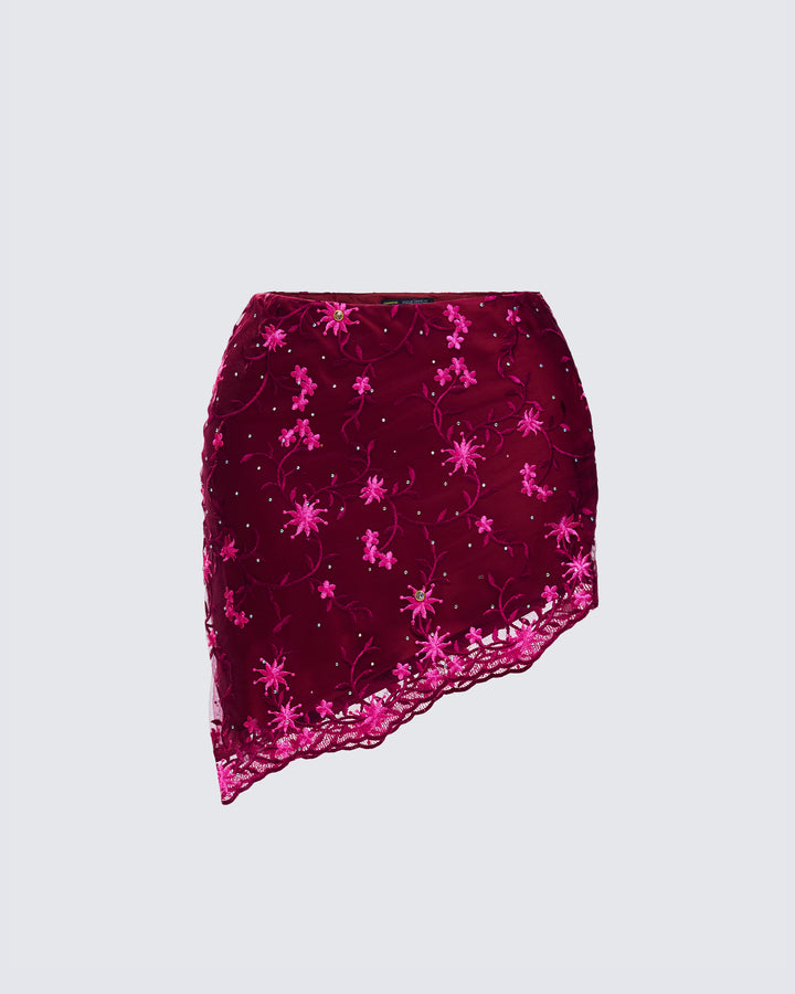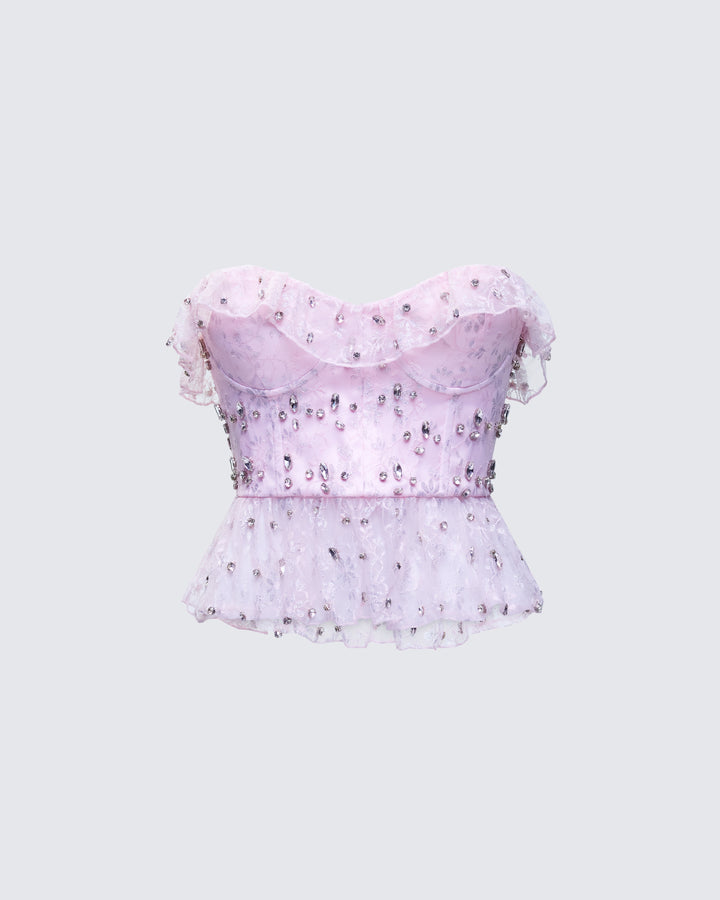 Love Hand Beaded Rhinestone Pink Ruffle Short