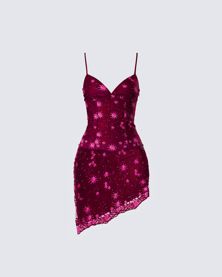Regular price $138.00Regular priceUnit price / perSale price $138.00Clover Hand Beaded Rhinestone Pink Mini Dress