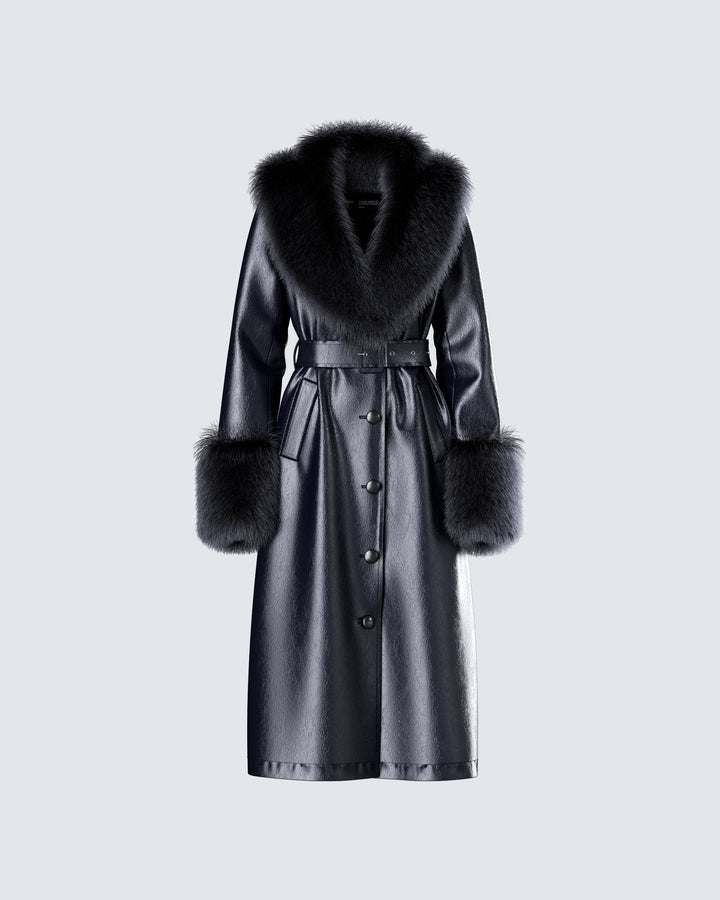 Willa Black Vegan Fur Leather Coat