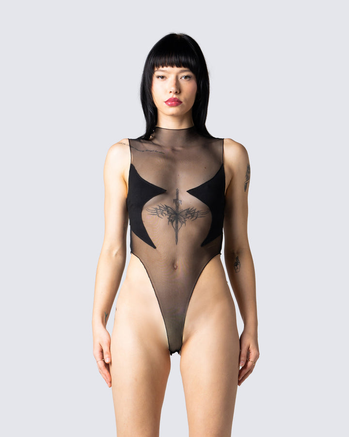 Ekaterina Black Mesh Ruffle Top