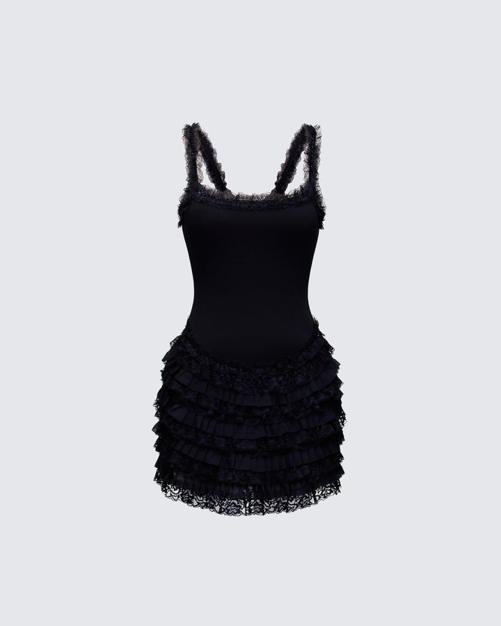 Aurelia Black Printed Mesh Ruffle Mini Skirt