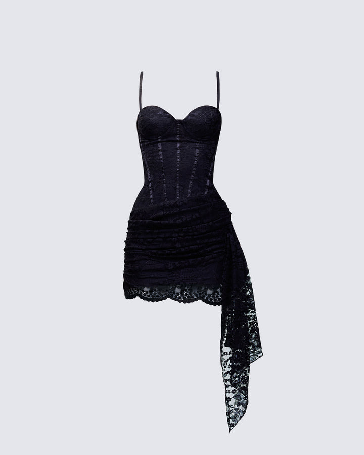 Cinderella Black Boned Mesh Bustier Bodysuit
