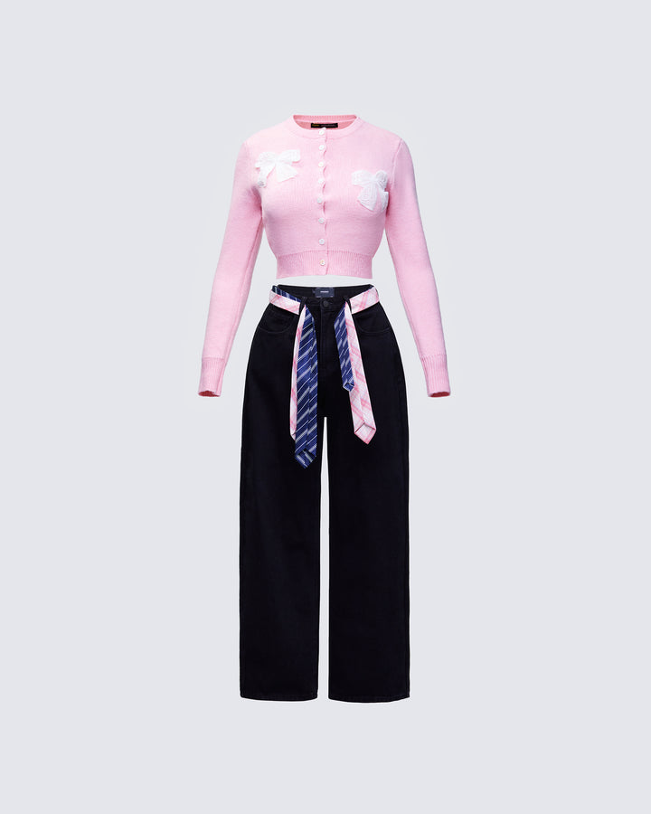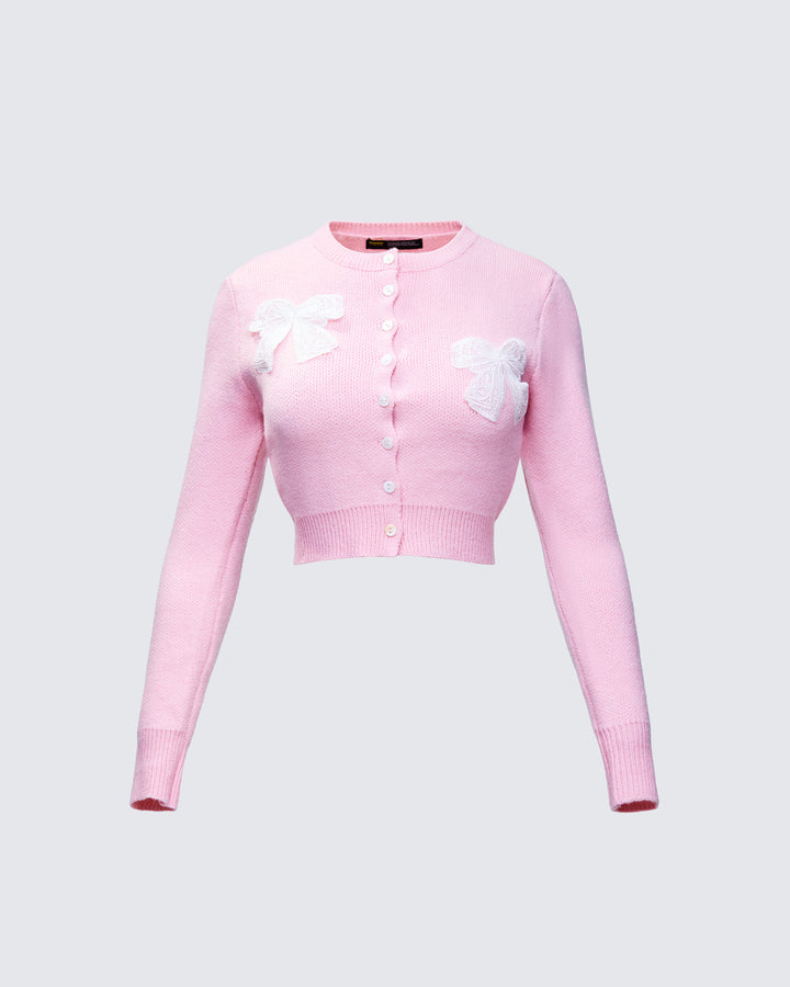 Habibah Pink Bow Detail Cardigan