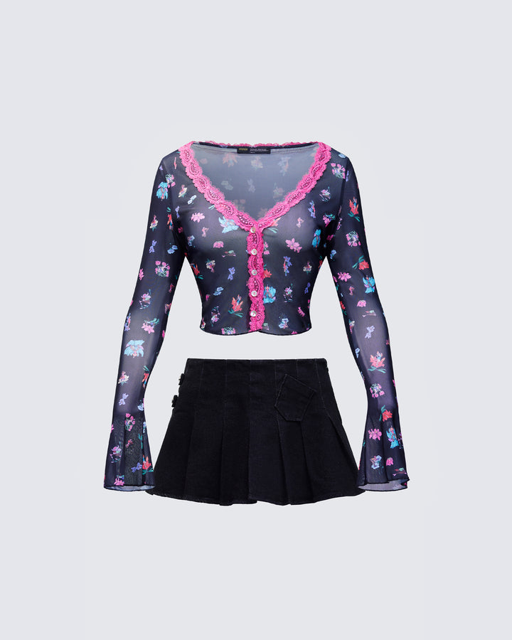 Aurelia Black Printed Mesh Top