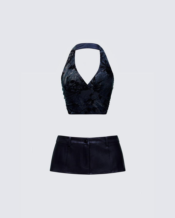 Novia Black Vegan Leather Mini Skirt