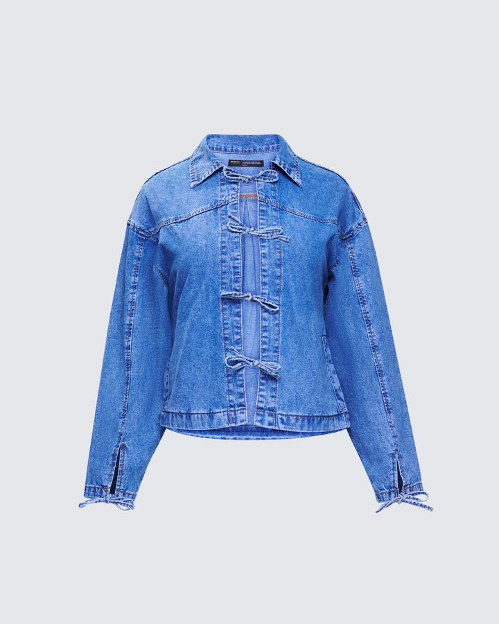 Freesia Blue Bow Tied Denim Shirt Jacket