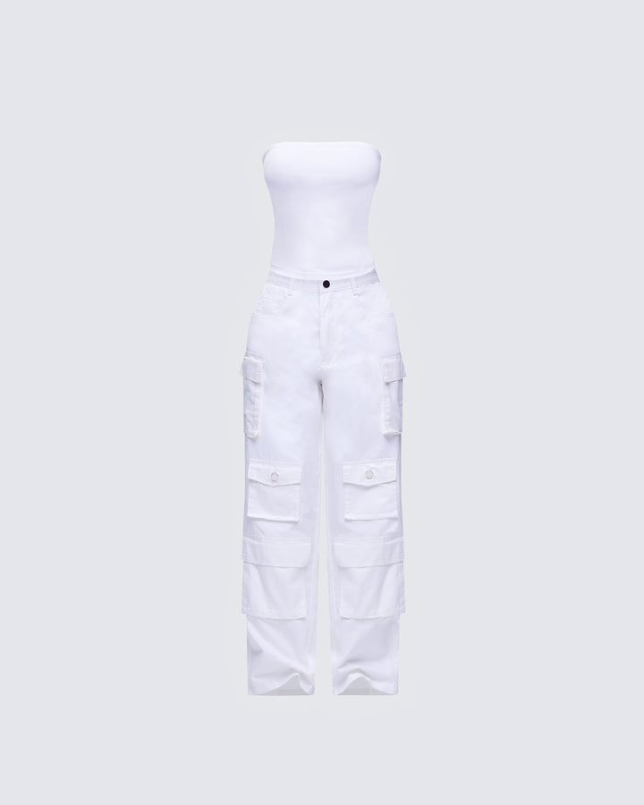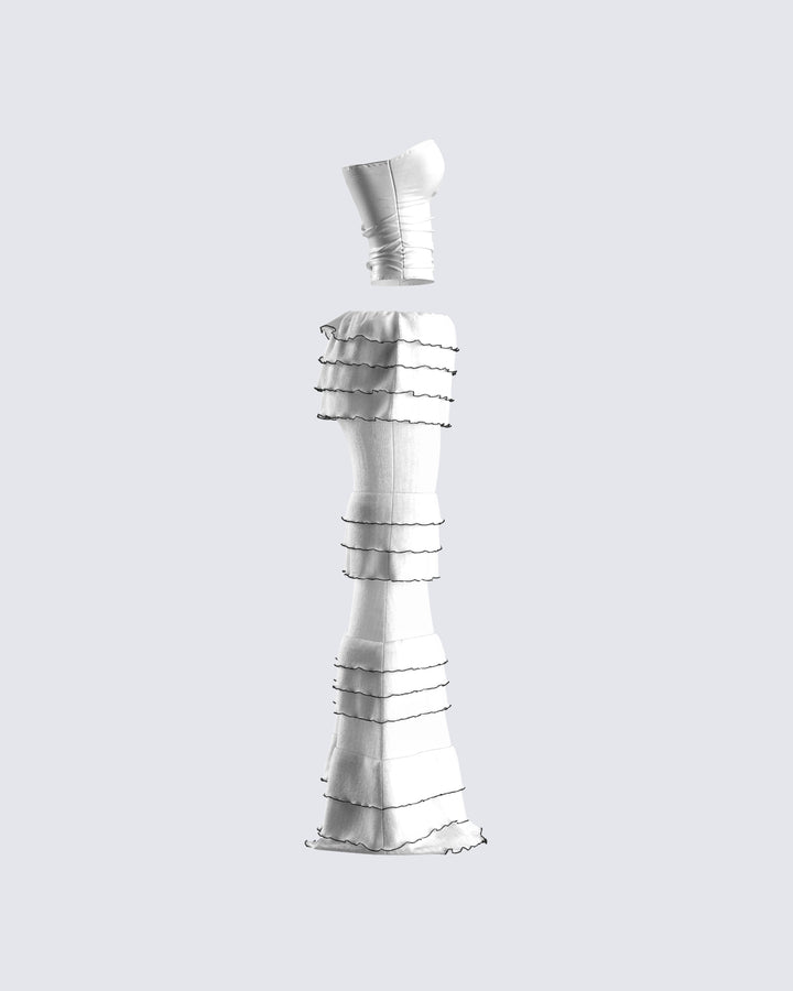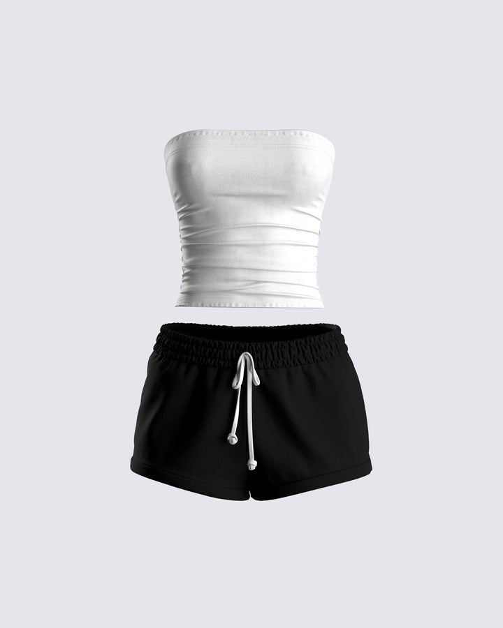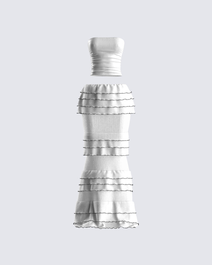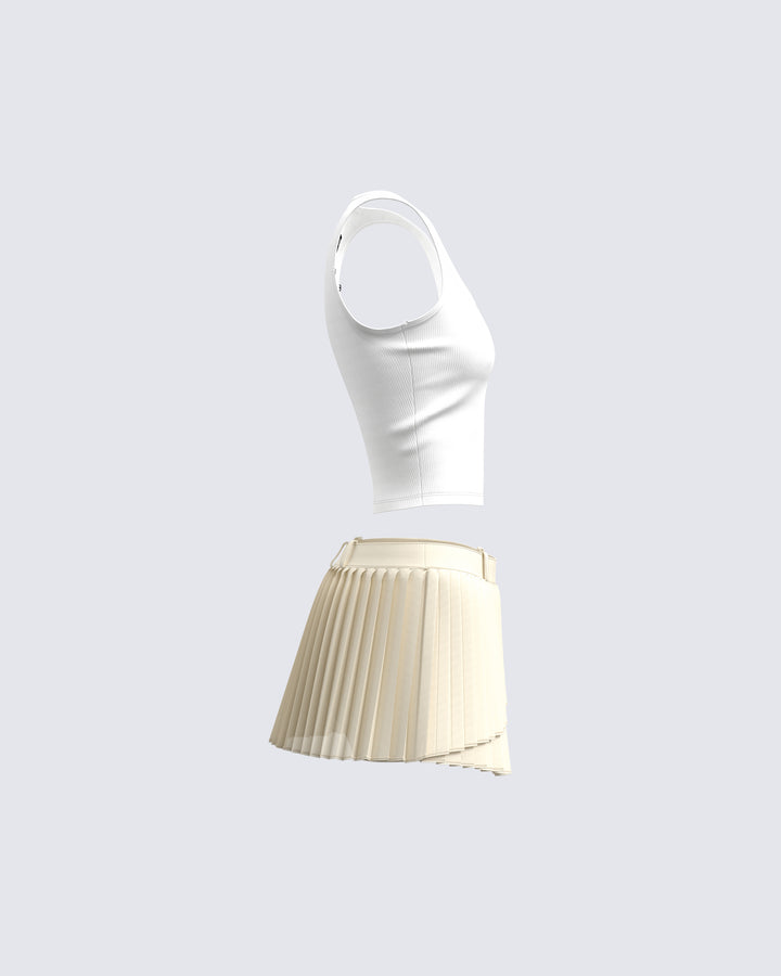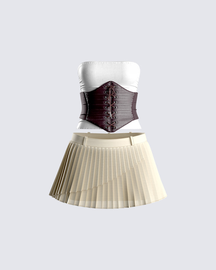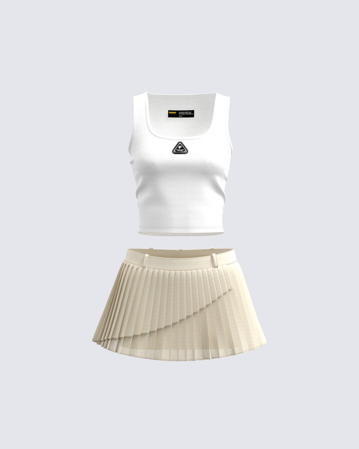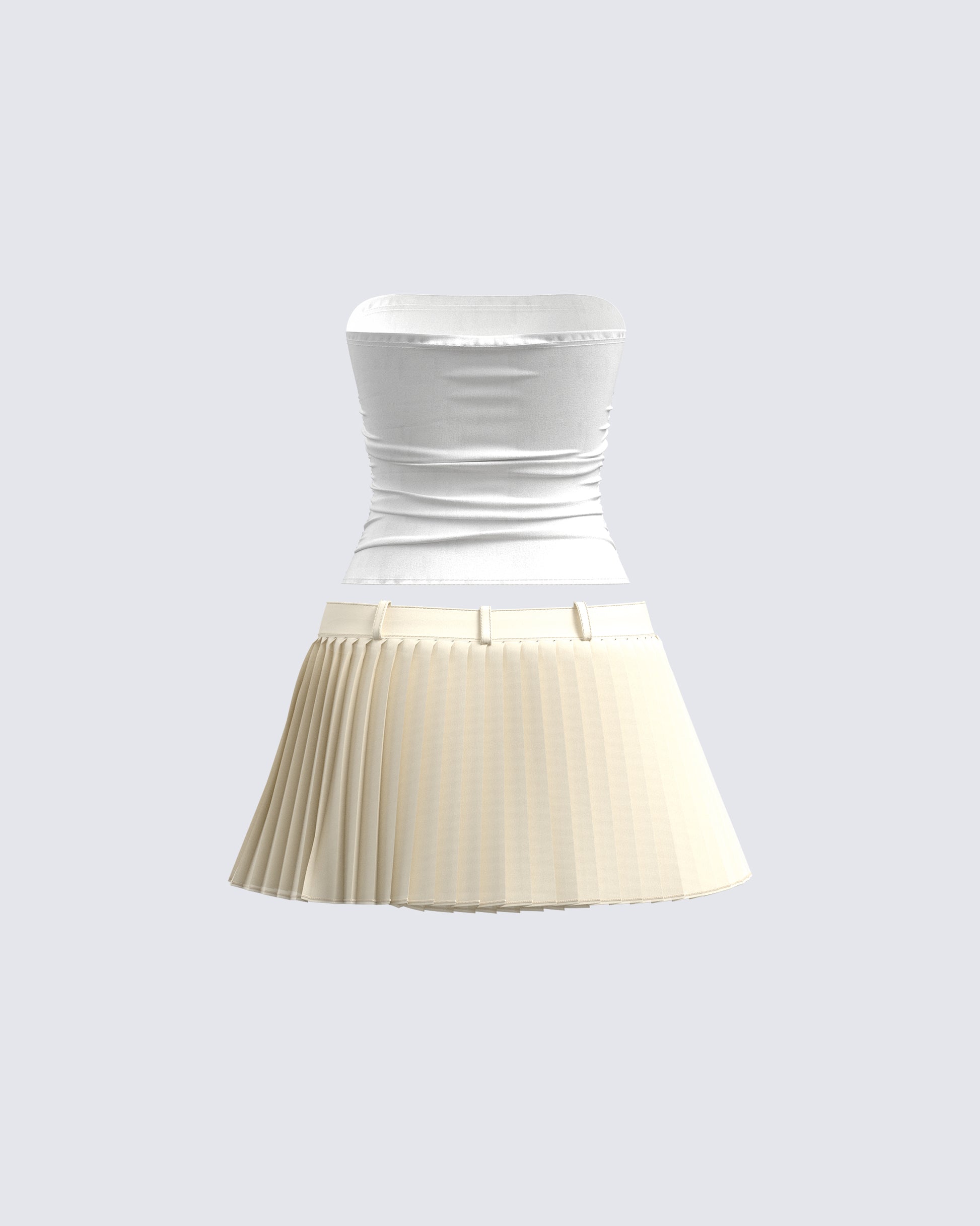 Sometimes less is more đ This two-piece set features two versatile basics: A white jersey tube top, paired with a cream crepe pleat skirt - perfect for dressing up with accessories đ€