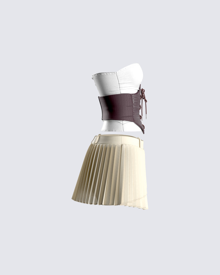 <p>Aaliyah White Jersey Tube Top: 95% Cotton, 5% Spandex</p><p>Mansa Cream Crepe Pleat Skirt: 70% Polyester, 30% Viscose</p><p>Lining: 95% Polyester, 5% Spandex</p>