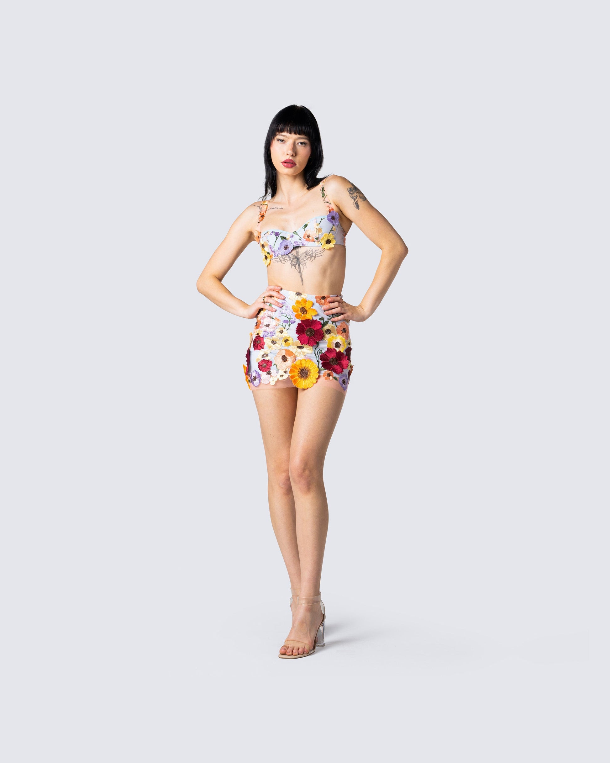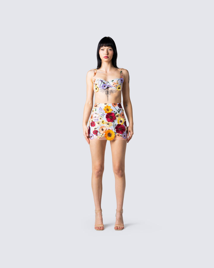 Perfection is hard to reach - but easier than ever now with our 3D flower mini skirt 👑Brighten up your fit and bring a little bit of sunshine everywhere you go ☀️