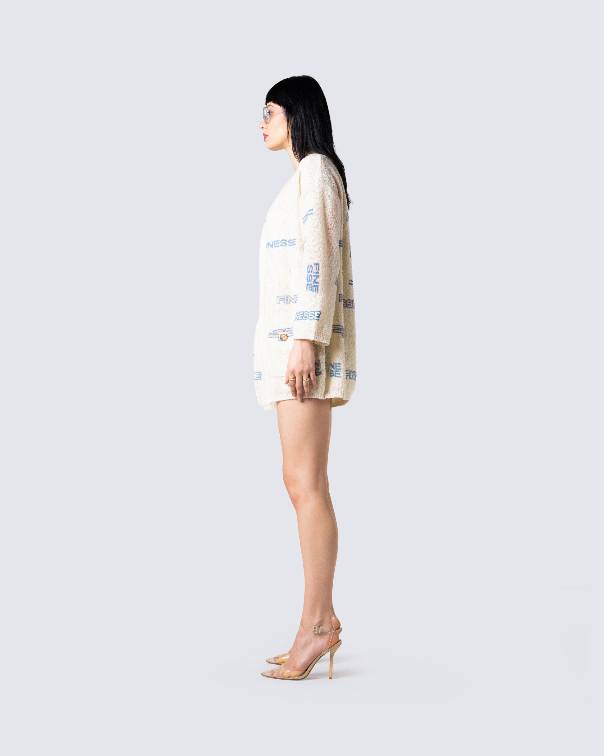 Be soft and subtle, yet fierce and feisty in this one-shoulder, ivory print mini dress and cardigan set 🥵 A true bad b*tch never just has one look 😏