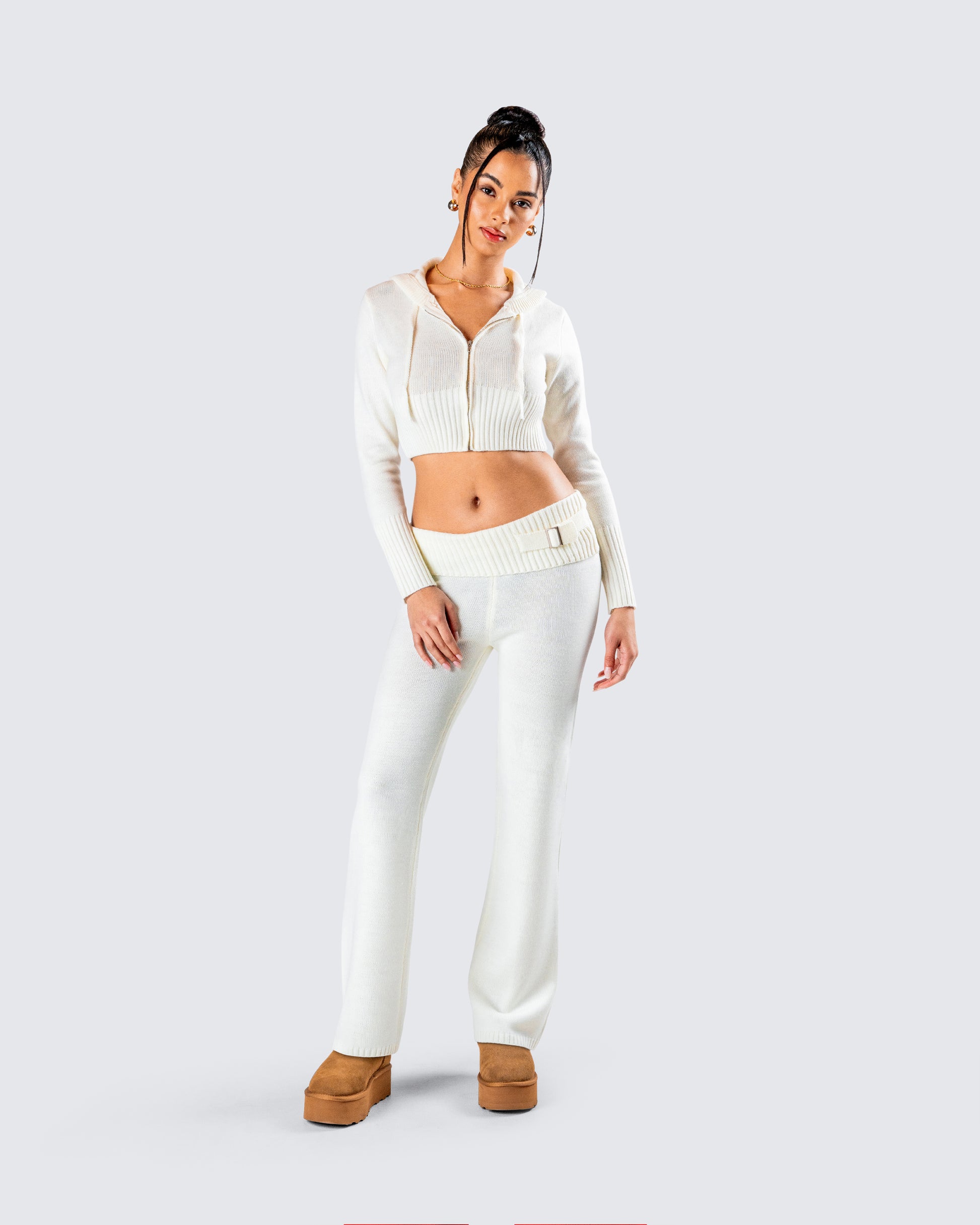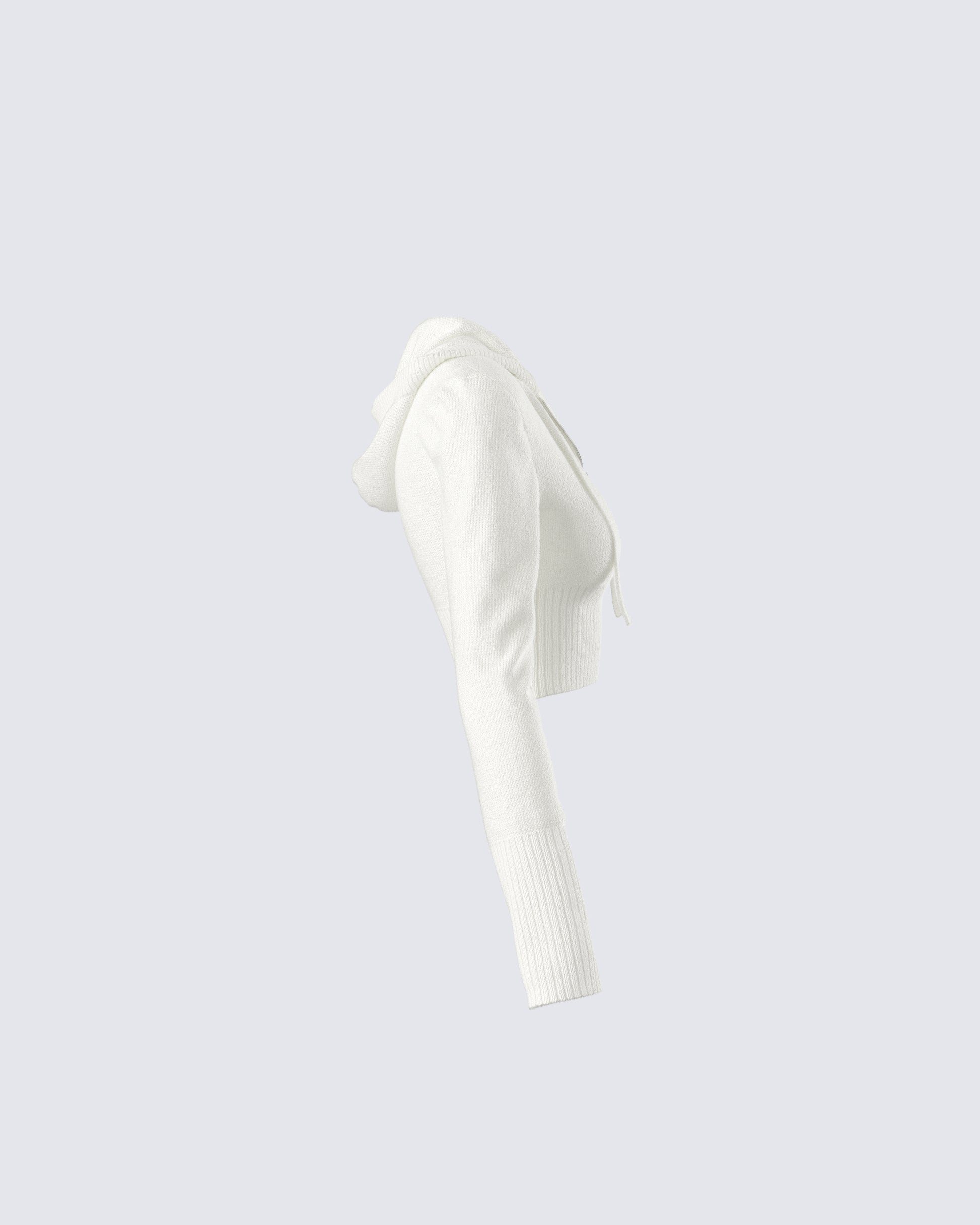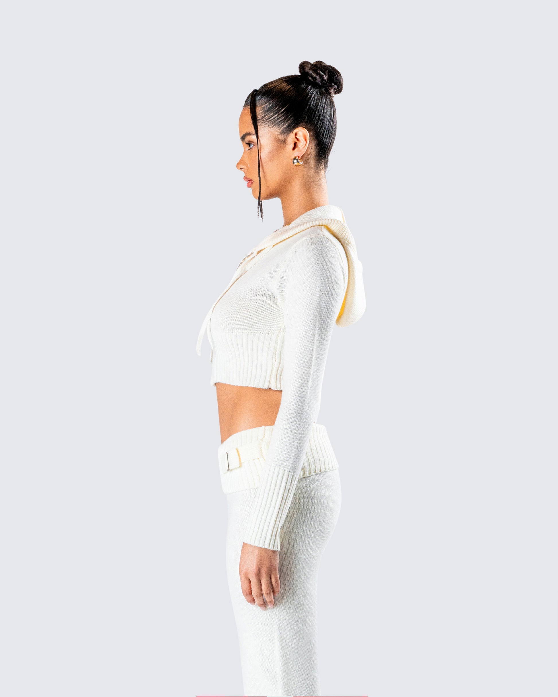 Say hello to your new fav essential 🤍 This white knit cropped jacket featuring a zip front, a rib hem, and extended long sleeves is perfect for keeping you hawt all day and night 😏