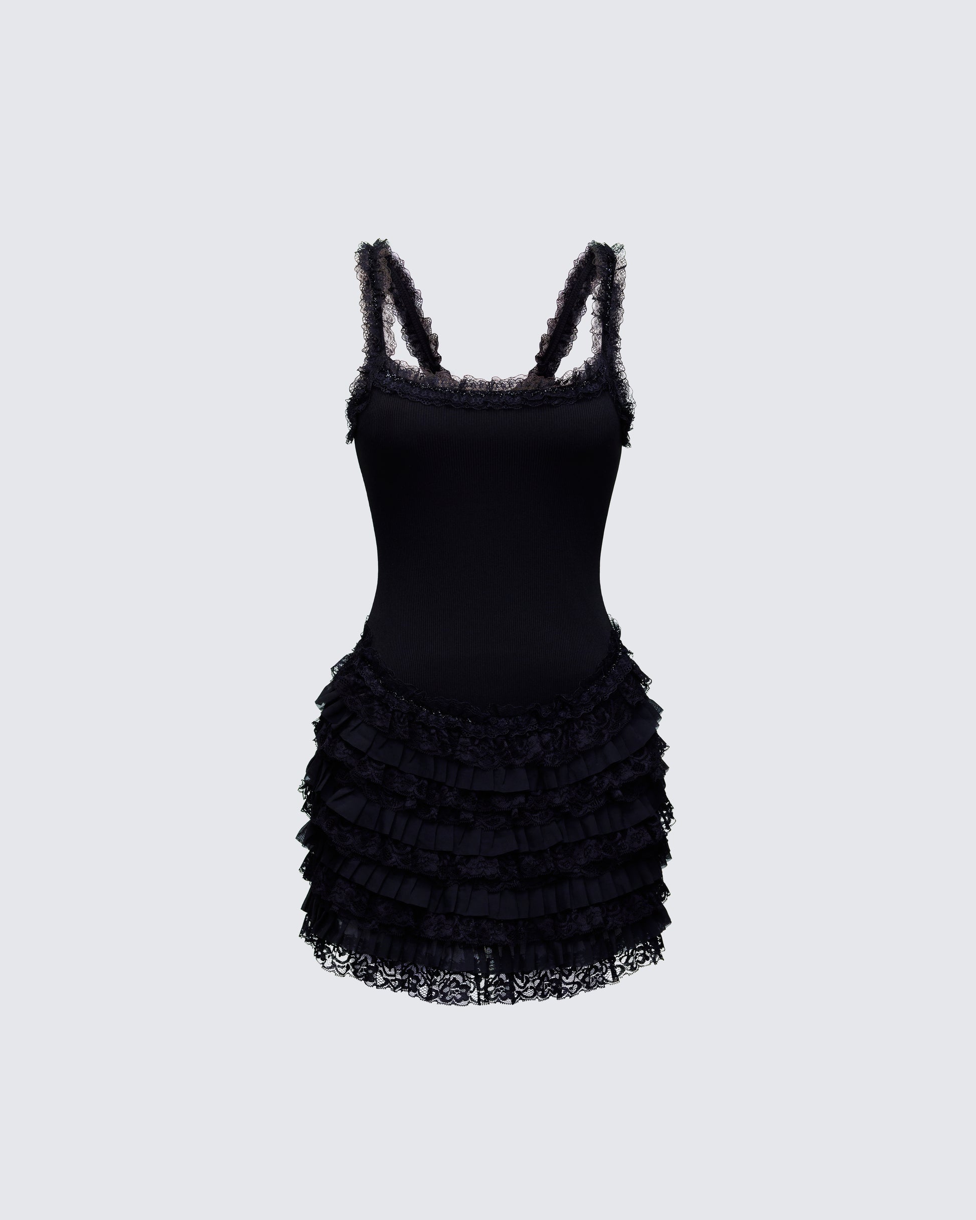 Unruffle me 💋 This double-layered lace trim mini is ready to make all your LBD wishes come true. ‘Cause a little frill never hurt 😉