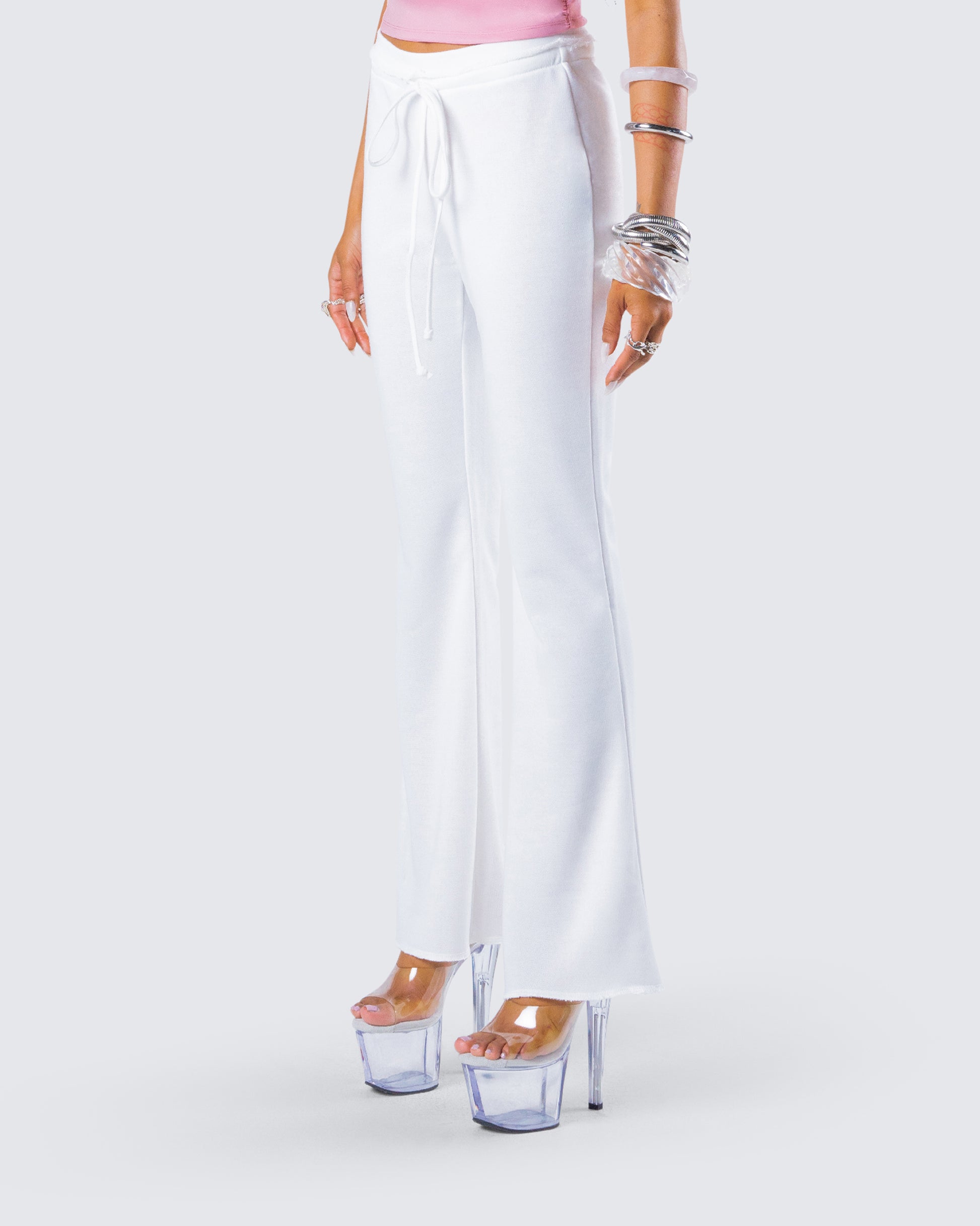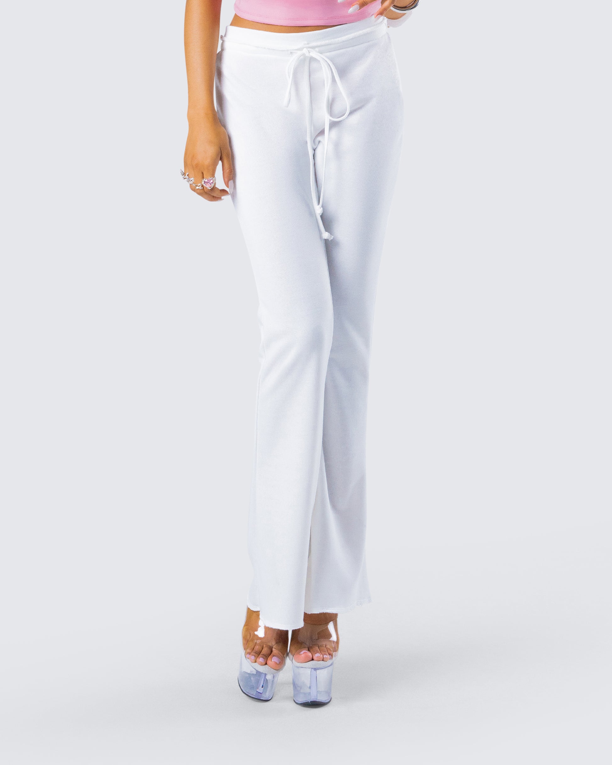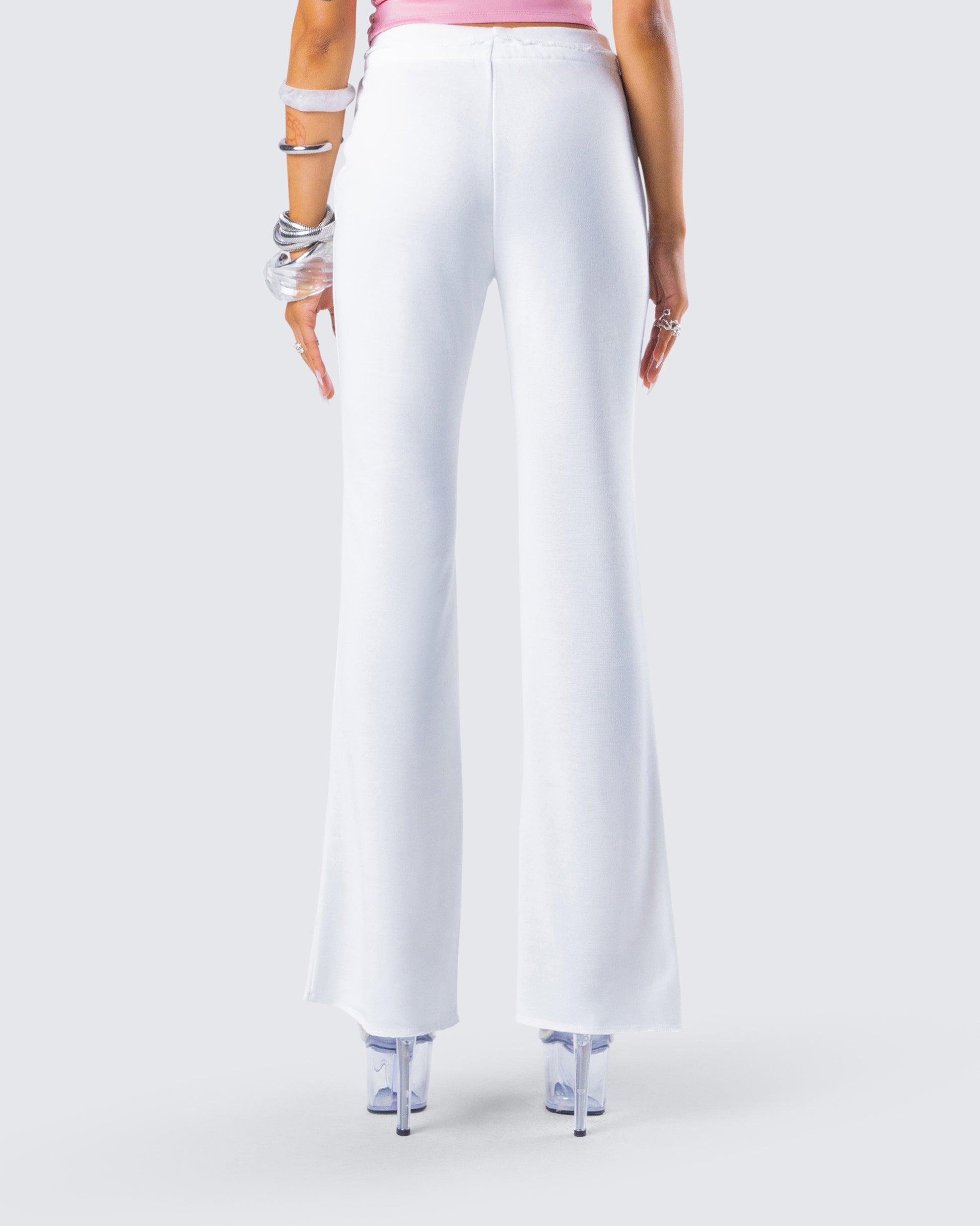 An it-girl essential 💕 We’re bringing all your Y2K dreams to life with these white pants made from loop terry fabric and complete with a mid-rise fit and a flared leg. The perfect pants for anything from lounging to slaying in the streets 💅