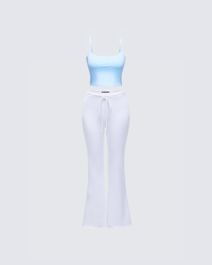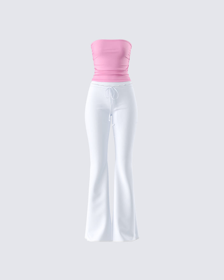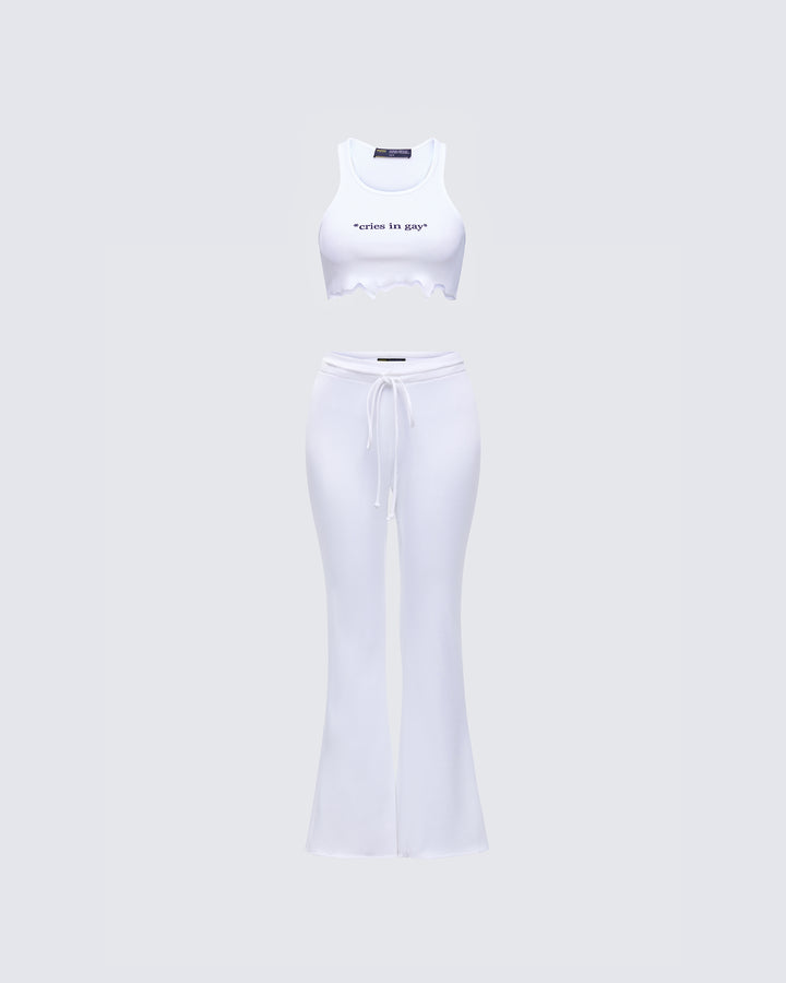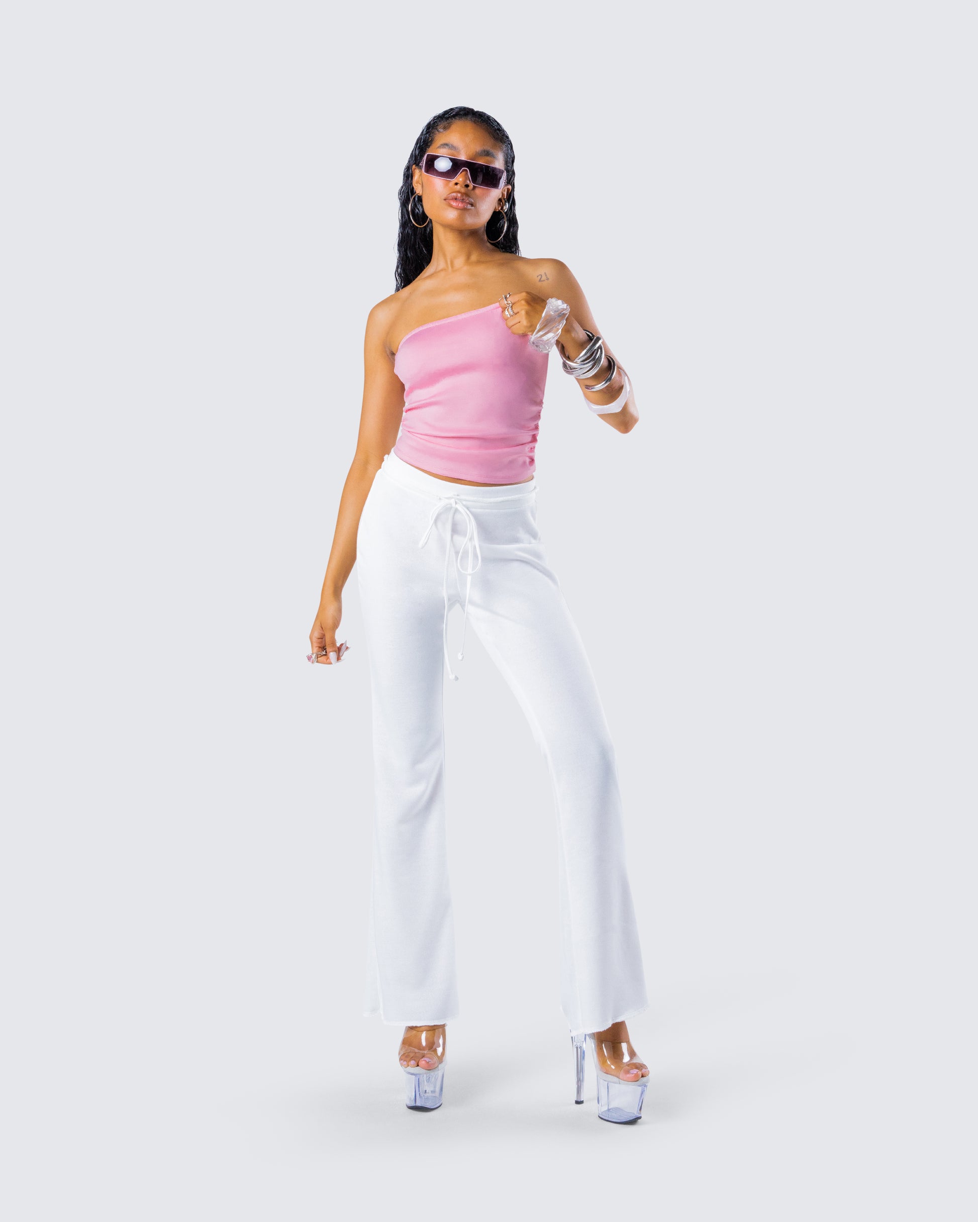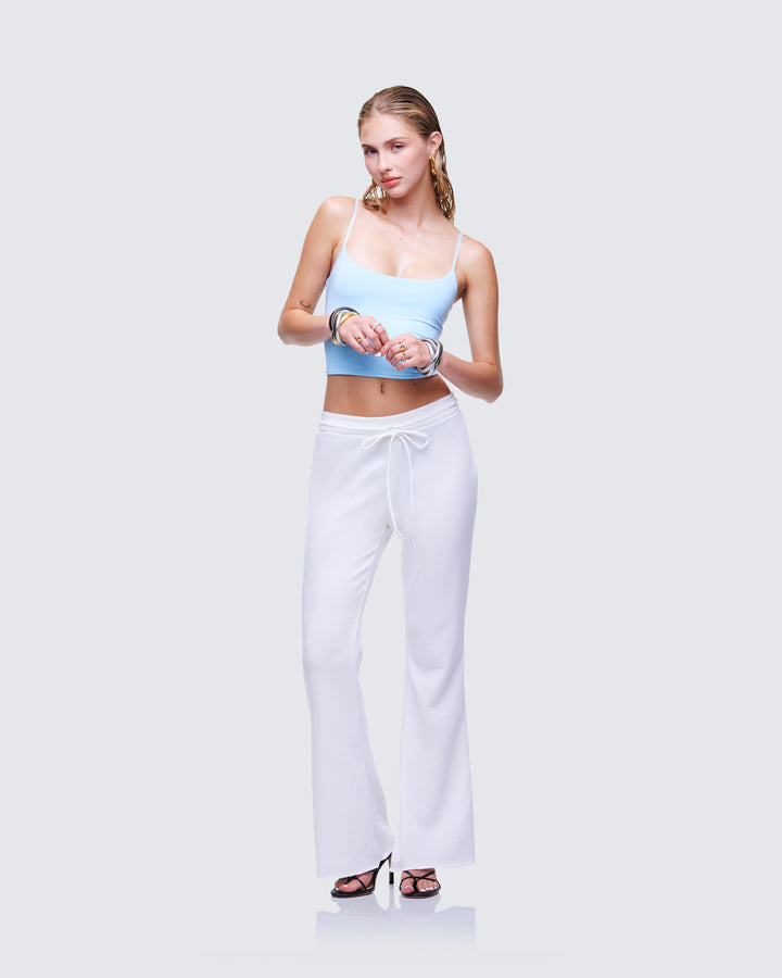 An it-girl essential 💕 We’re bringing all your Y2K dreams to life with these white pants made from loop terry fabric and complete with a mid-rise fit and a flared leg. The perfect pants for anything from lounging to slaying in the streets 💅