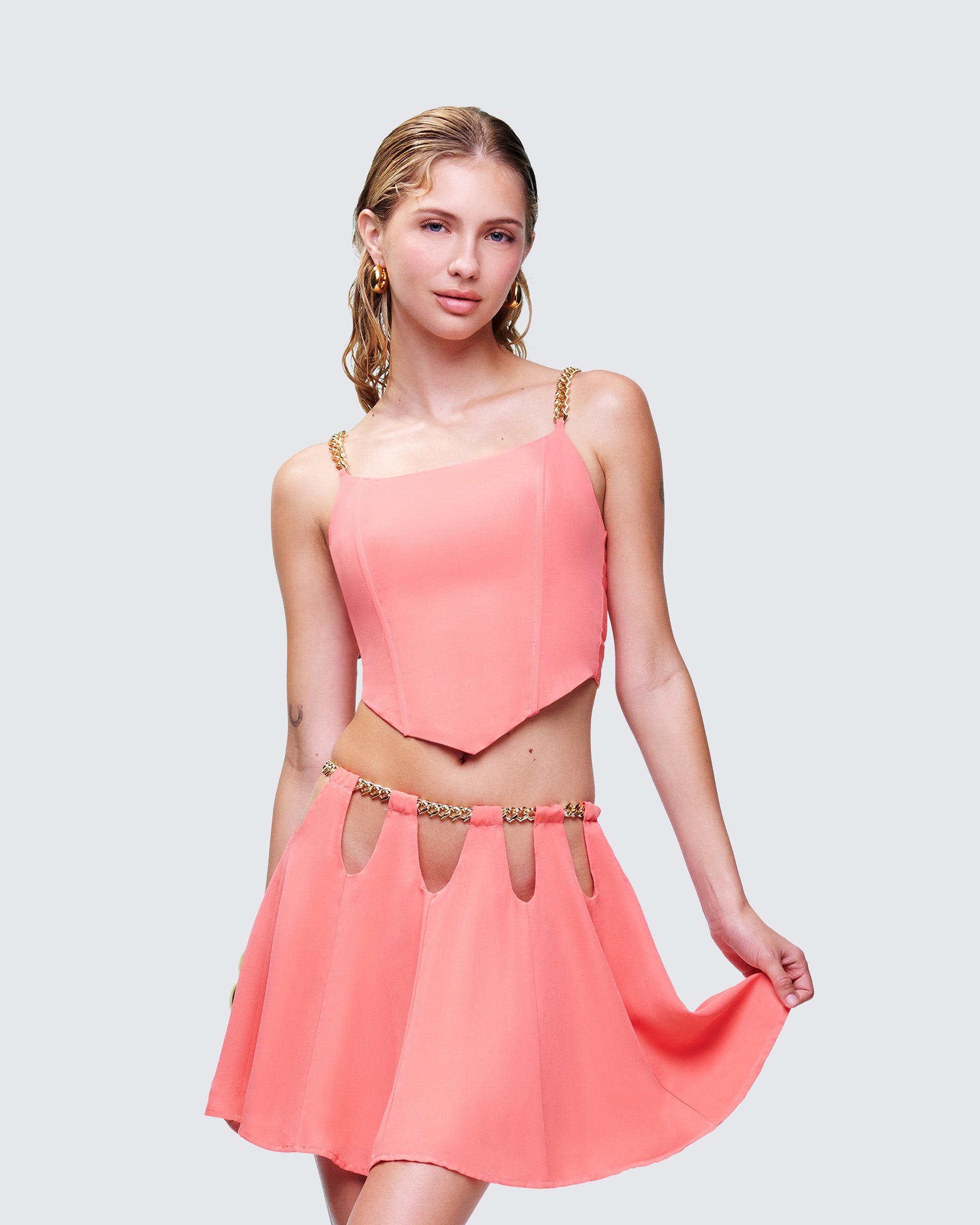 Arla Pink Heart Chain Mini Skirt