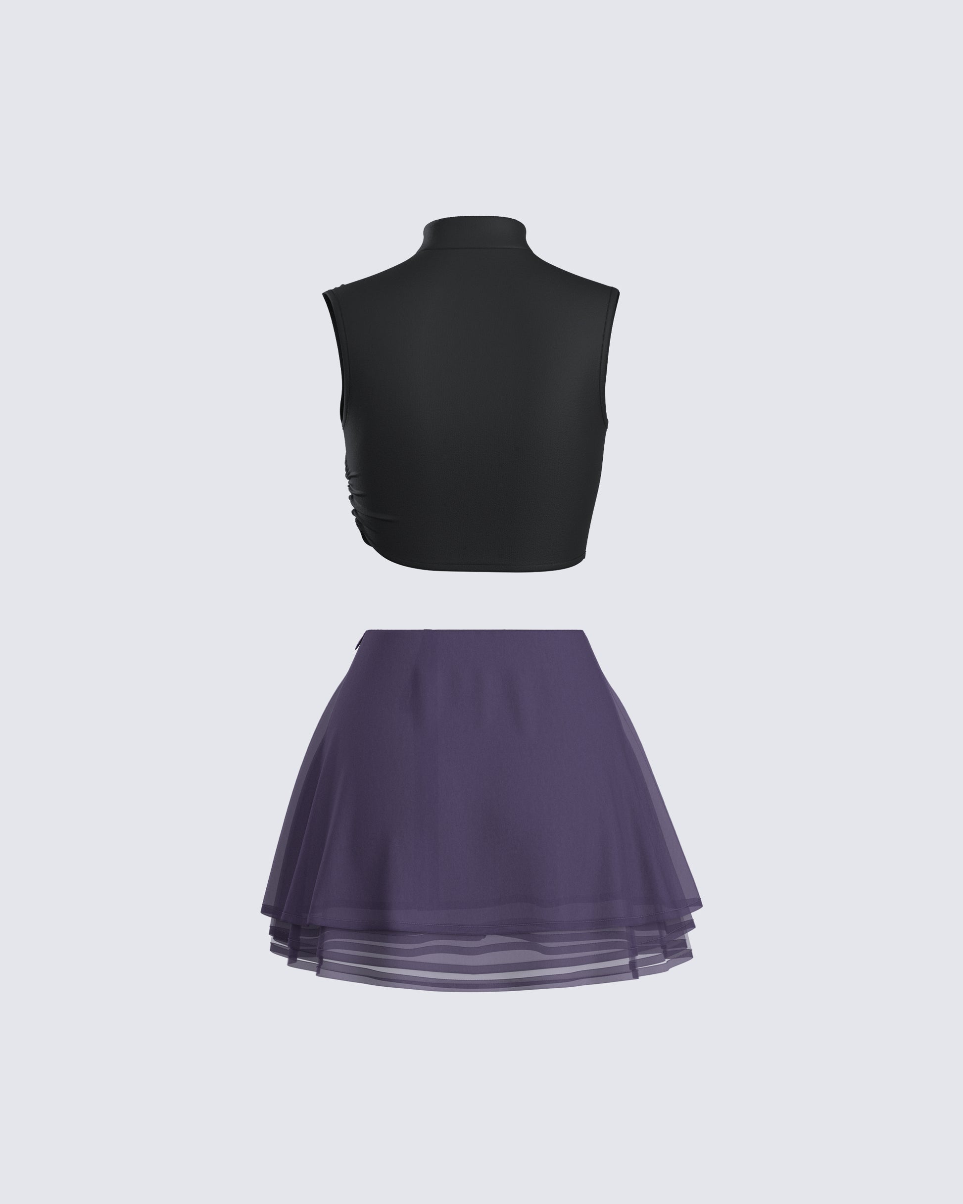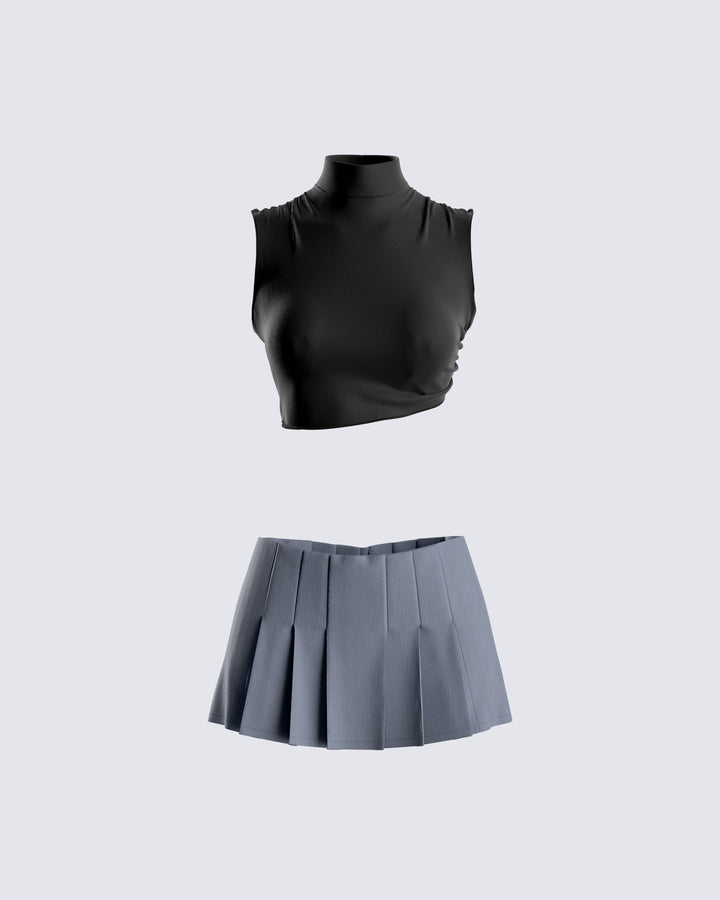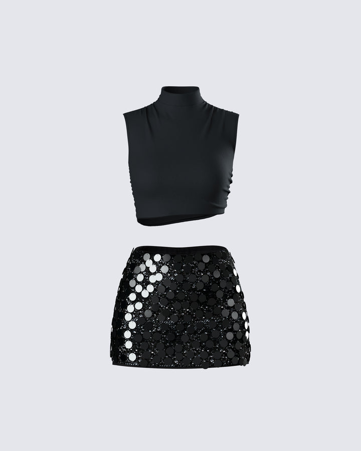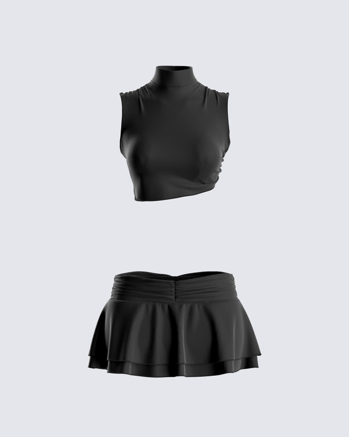 A little sweet, a little sassy π Give them the best of both worlds in this two-piece set featuring a black turtleneck cropped top and a charcoal layered mini skirt π€