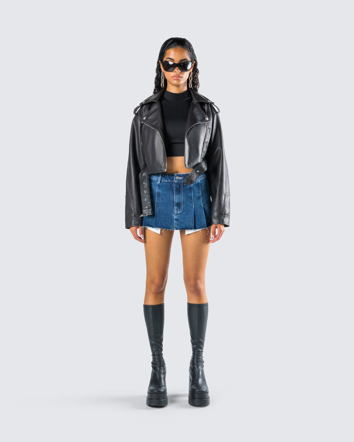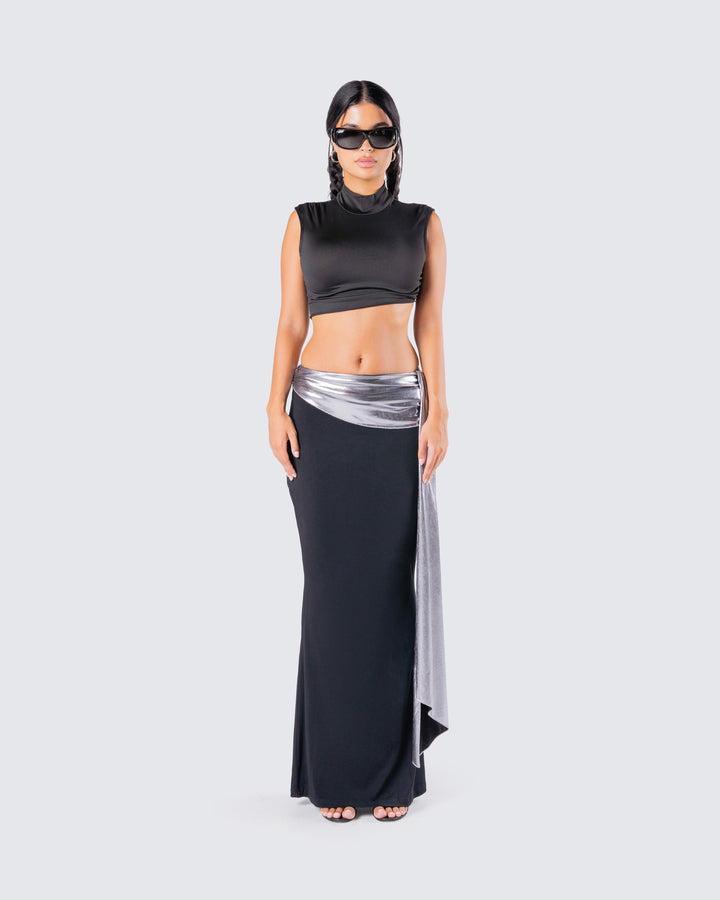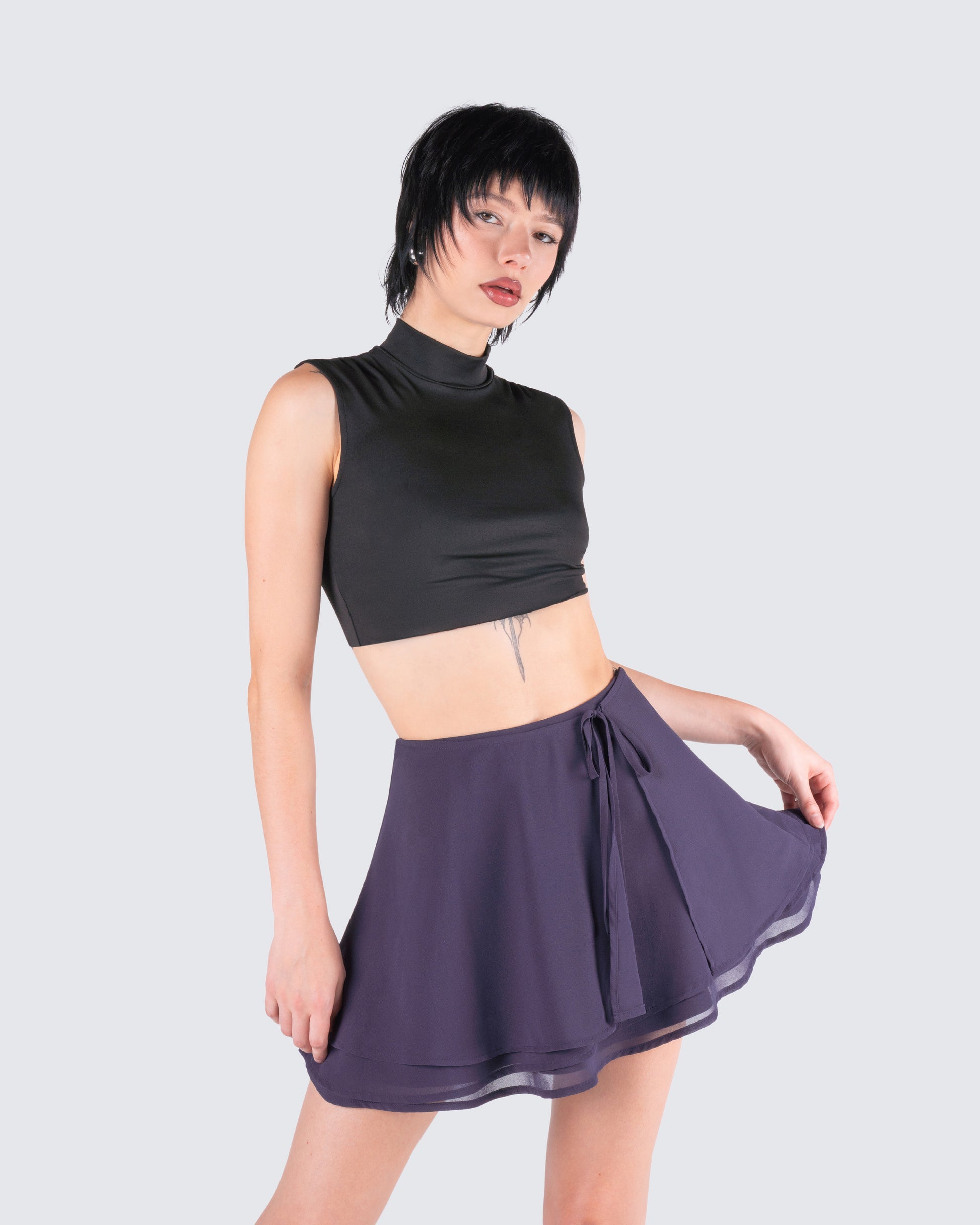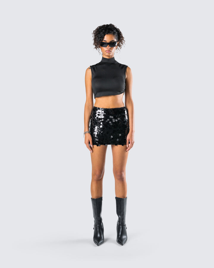 A little sweet, a little sassy π Give them the best of both worlds in this two-piece set featuring a black turtleneck cropped top and a charcoal layered mini skirt π€
