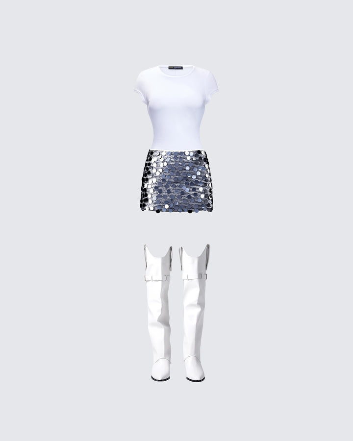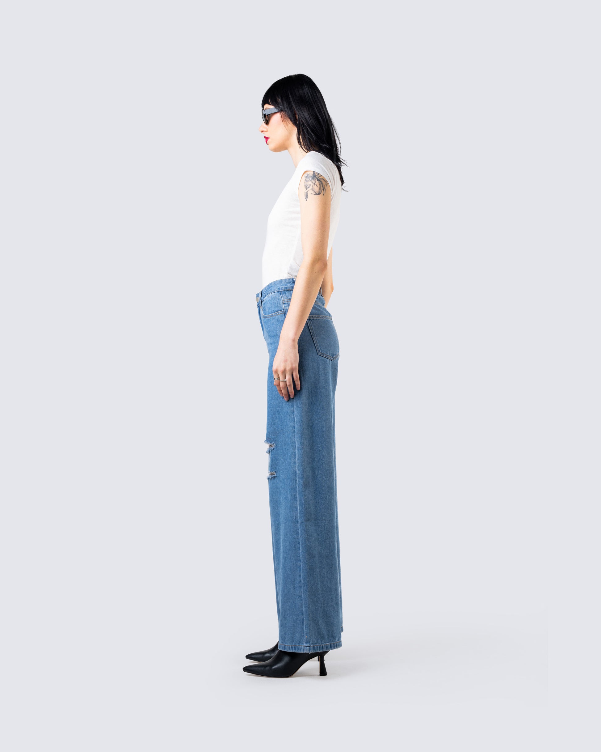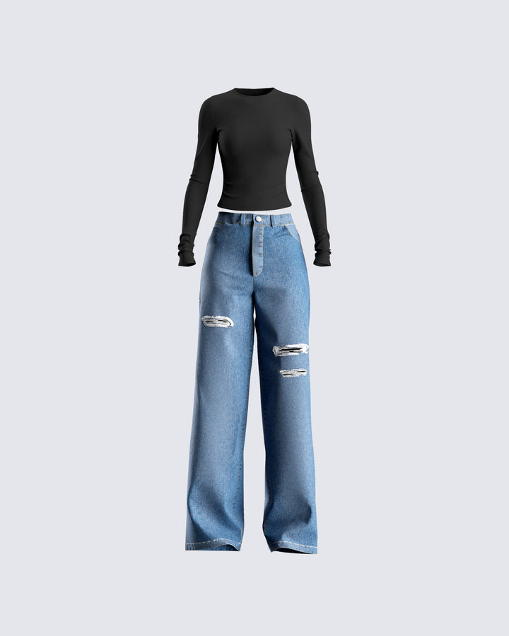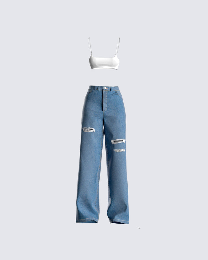 A simple fit, but damn does it look good  😜 This white slub knit tee and distressed jean set is kind of a rite of passage to being a bad b*tch. Show them how you can turn something basic, into a major slay 💅🏼