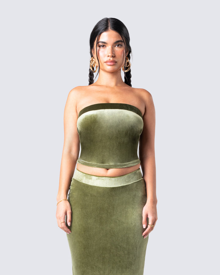 Sale price $29.00Regular price $29.00Regular priceUnit price / perSale price $29.00Ayla Olive Green Velvet Tube Top