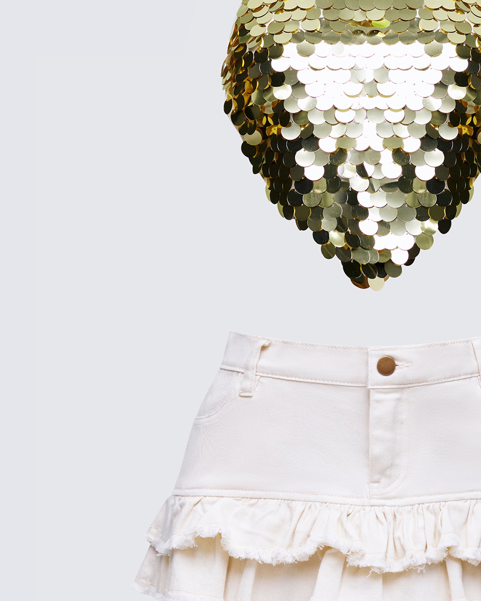 For when “too much” is just enough 😌 Pairing a gold sequin tie-up with an ivory ruffle mini for a look that’s equal parts party and playful - this two-piece set is flirty, fun, and fully designed to make sure the night revolves around you 💅