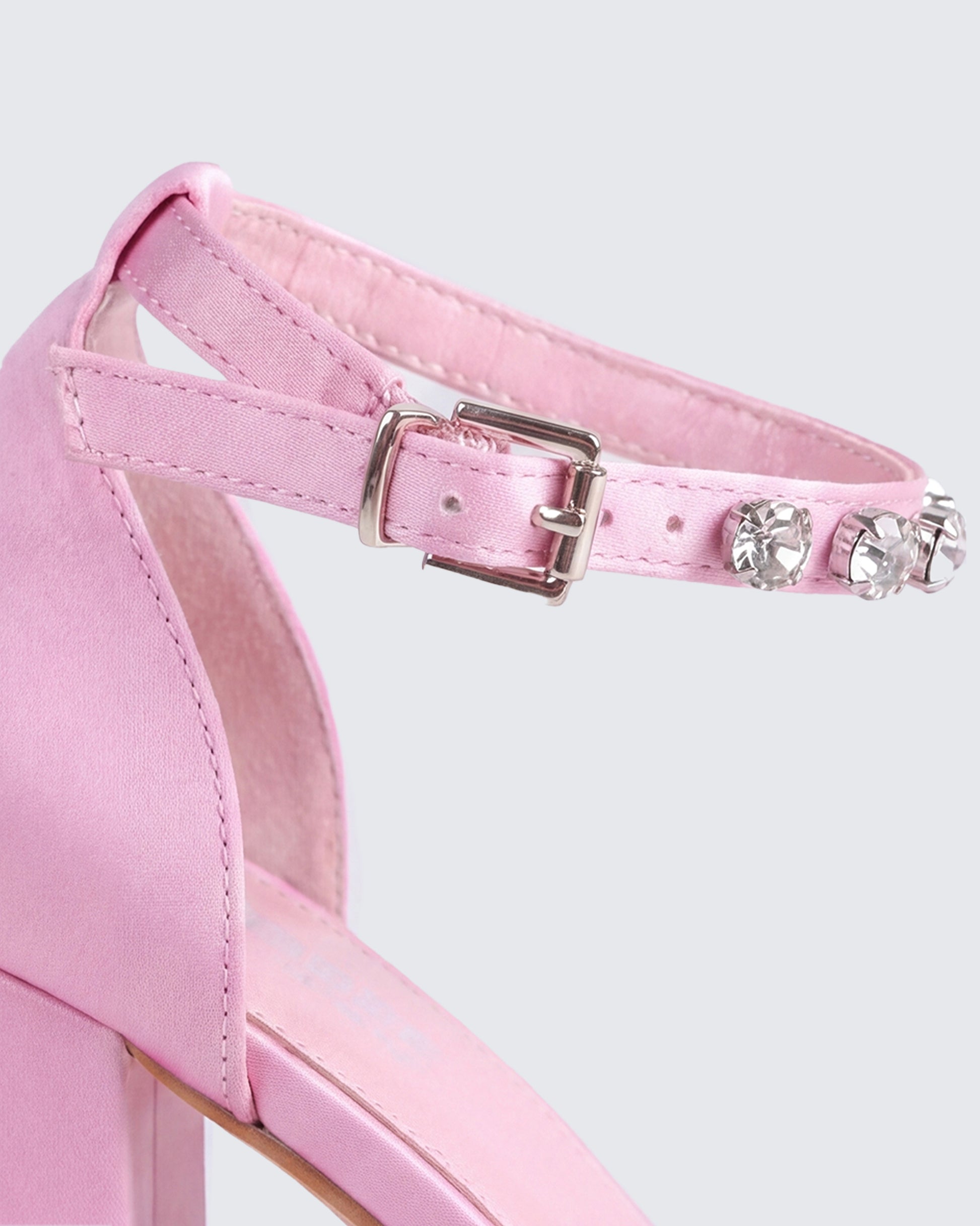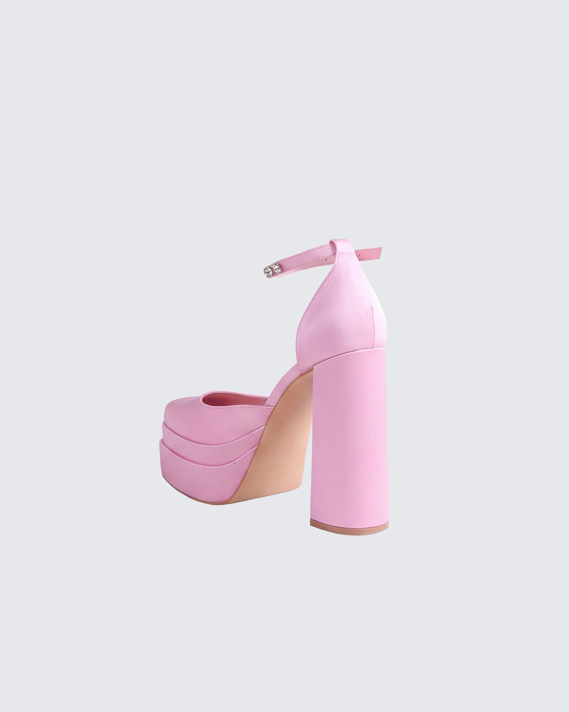 Barbie called — she wants her power heels back. These bubblegum pink platforms come with a rhinestone ankle strap that catches every light in the room. Double-stacked for the height without the hurt, perfect for when you need to tower over your ex at the party.