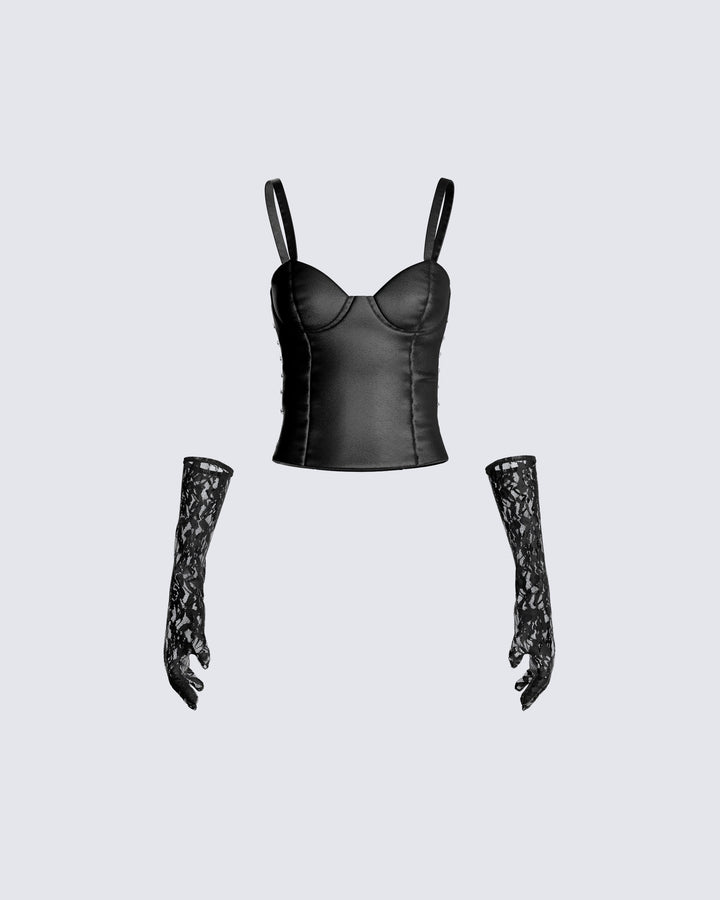 Beatrix Black Corset Top & Gloves