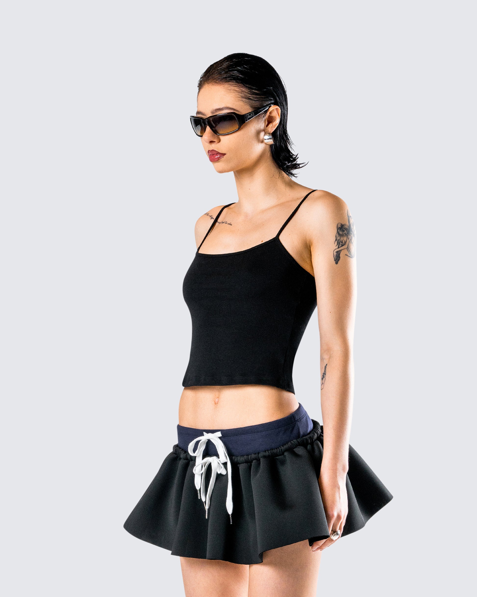 Takin’ it back to the basics with this one 😙 With a timeless and versatile look, this black cami tank top, made from double knit fabric and complete with adjustable straps and fitted style, is the most classic closet essential 🖤