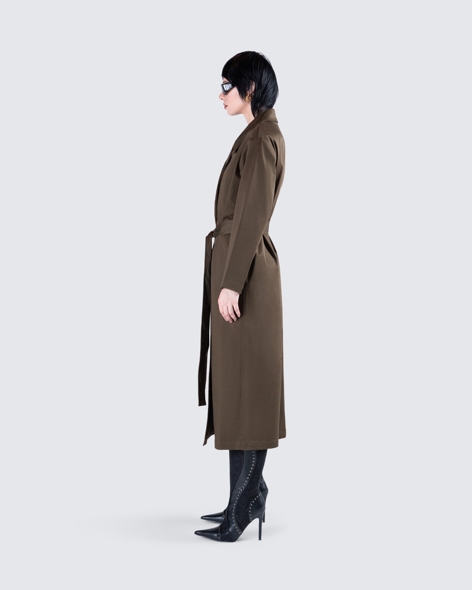 Bryn Dark Olive Belted Trench Coat