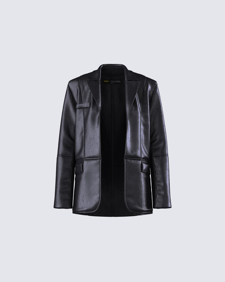 Nika Black Vegan Leather Blazer