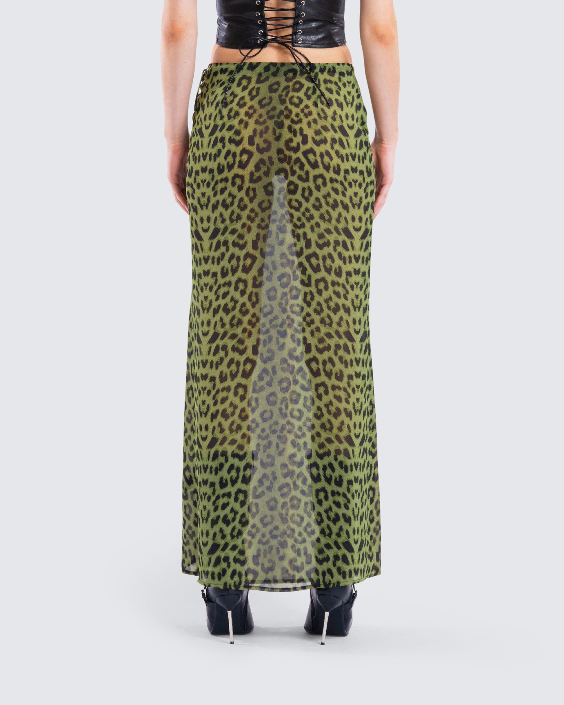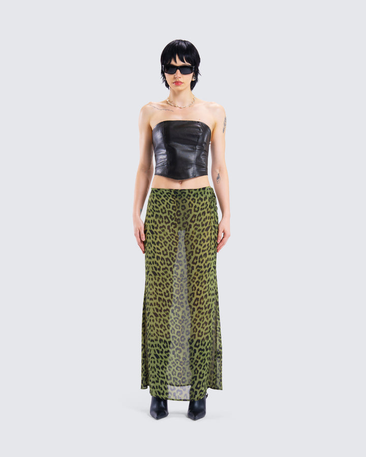 Take a walk on the wild side in this gorgeous leopard skirt 💚 Complete with a lime leopard print and a maxi length - this look will have everyone trying to keep up with you 😜