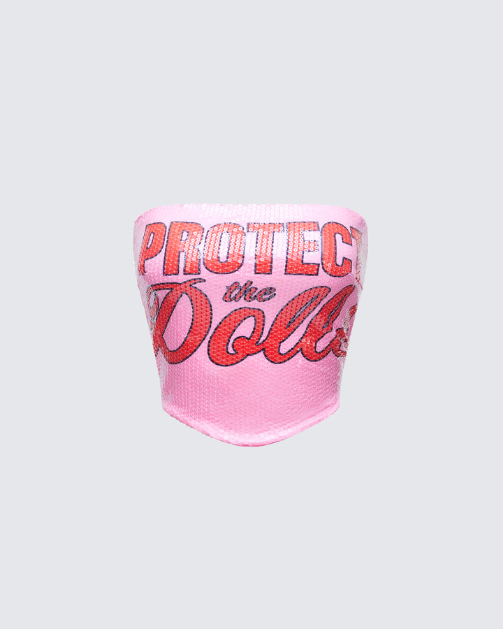 Astraia Pink Slogan Sequin Bandeau Top