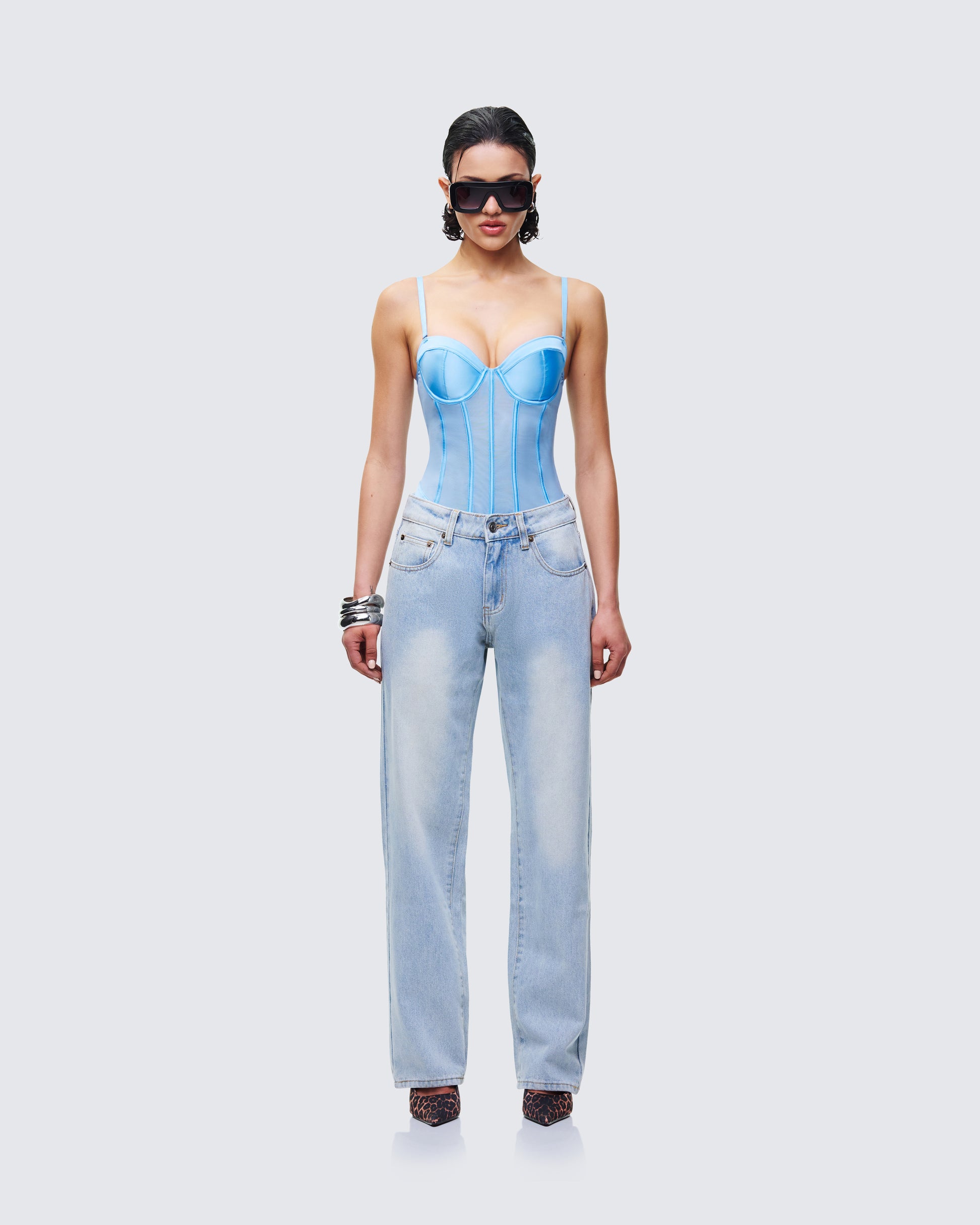 A little structured, a little undone π The sculpting mesh corset bodysuit pairs perfectly with relaxed low-rise denim and a pair of leopard heels or a look that feels confident, cool, and impossible to overlook π