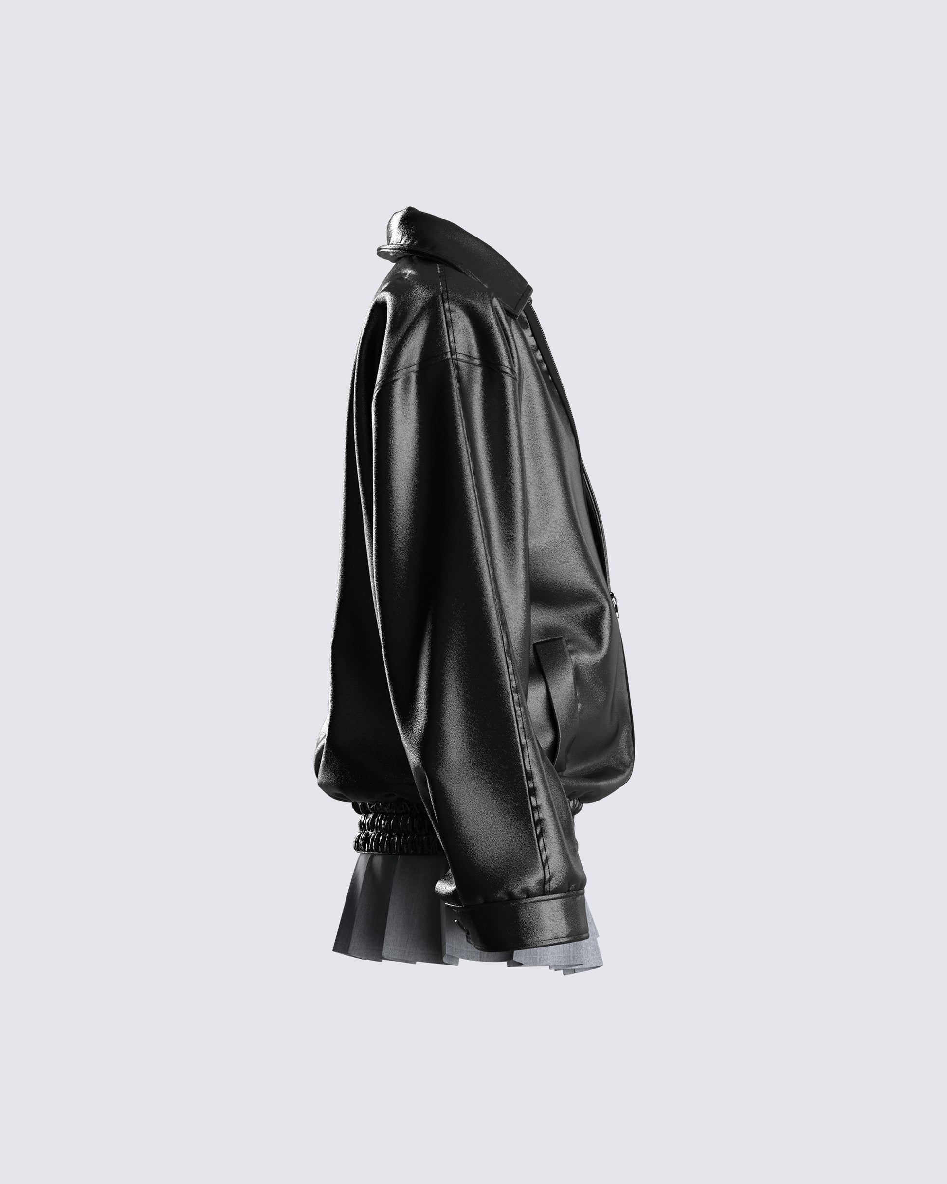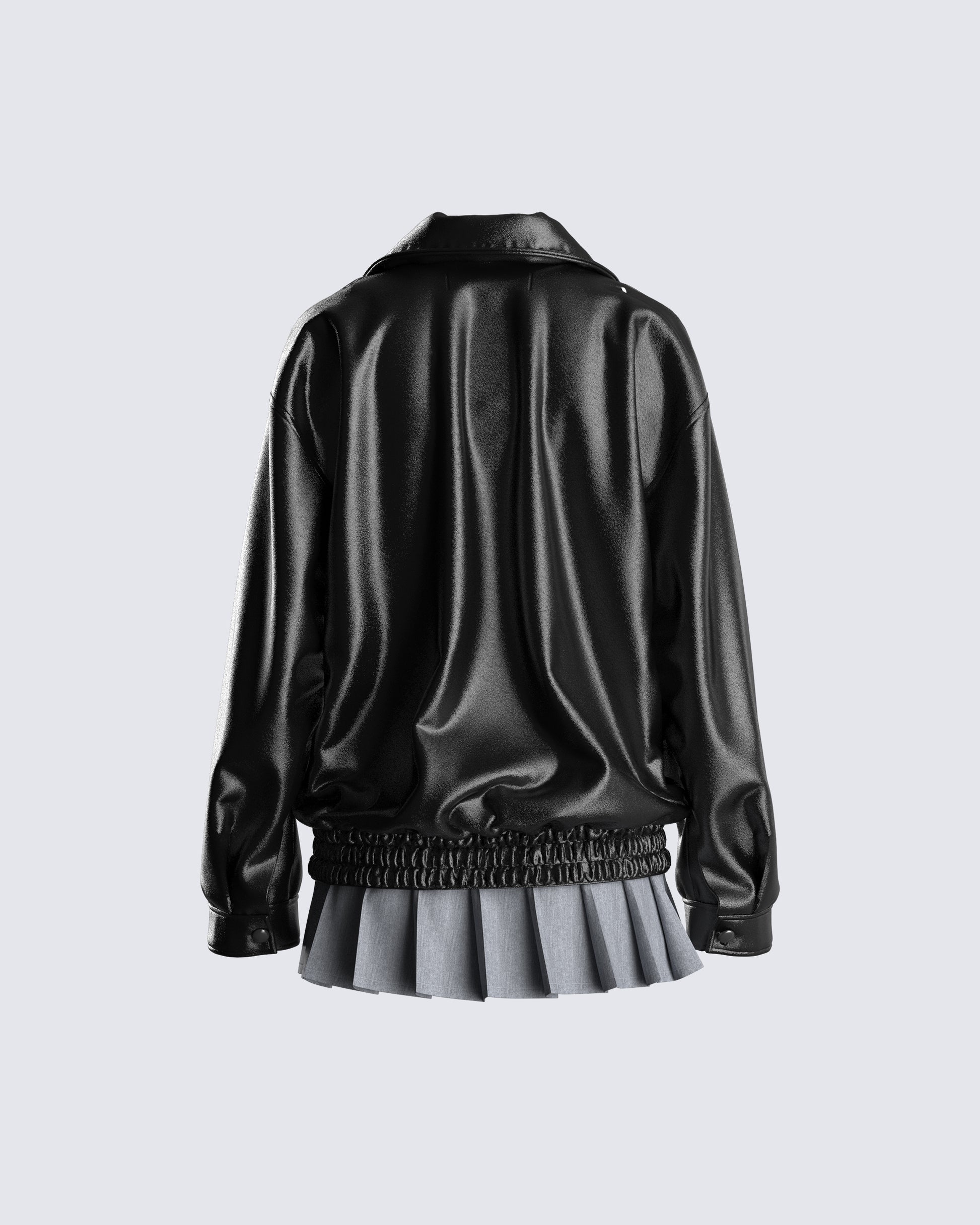 Your fit speaks volumes... and this fit is saying that you're a bad b*tch that won't be messed with 😊 Featuring a white cropped top, grey pleated mini skirt, and a black vegan leather jacket 🖤