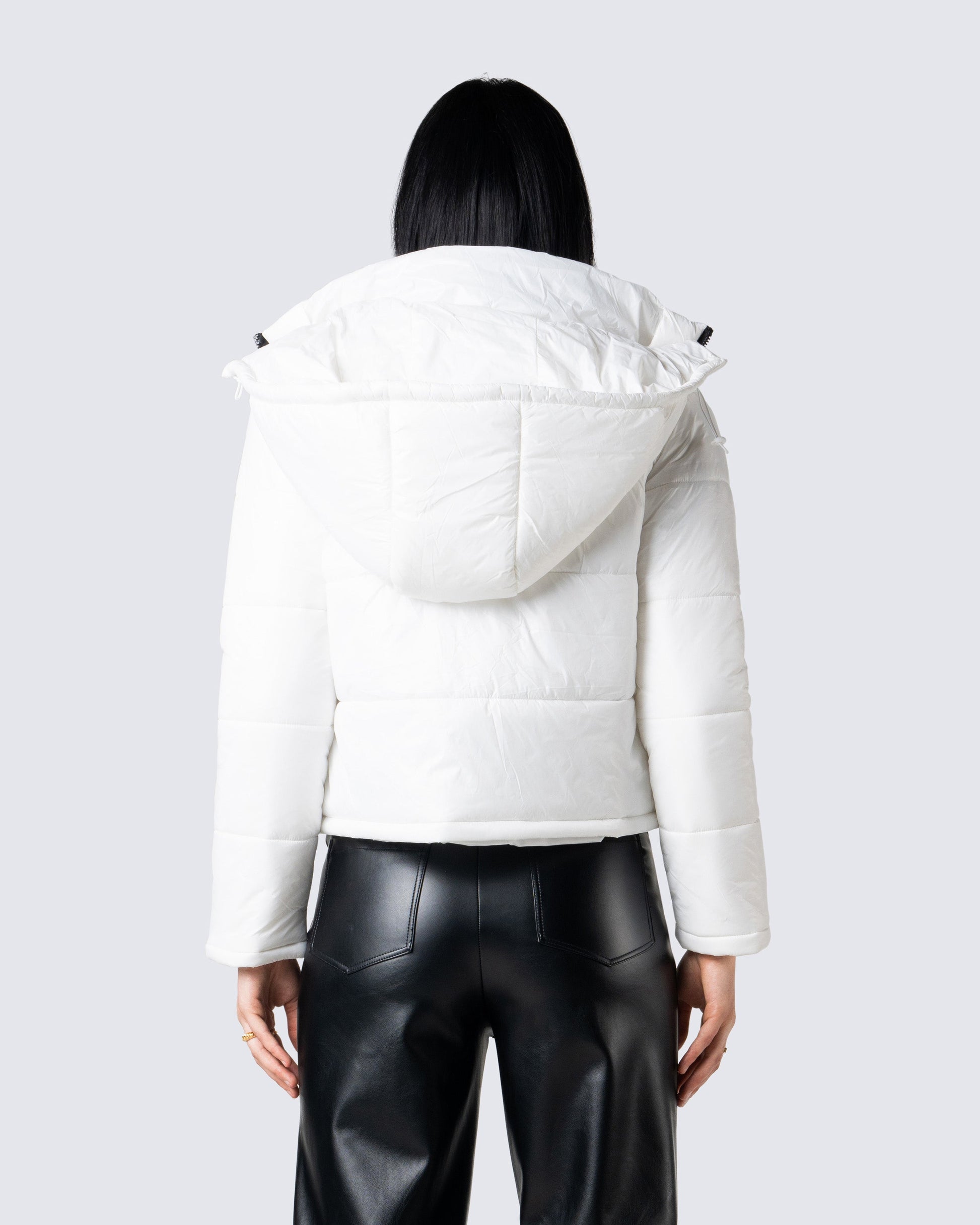 Truly, everyone needs a white puffer jacket for winter 🥶 An essential for a perfect and stylish, chilly day fit 🤍