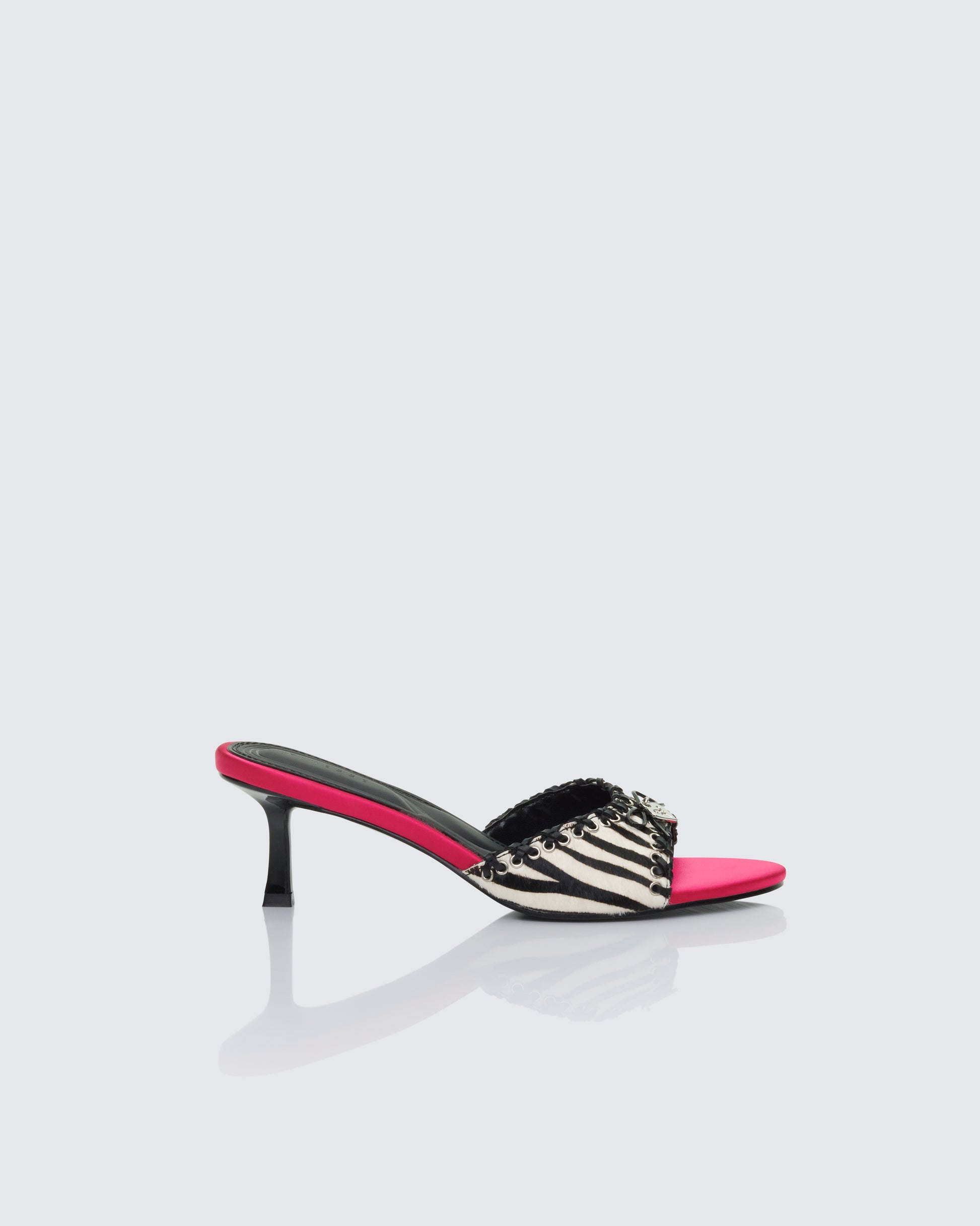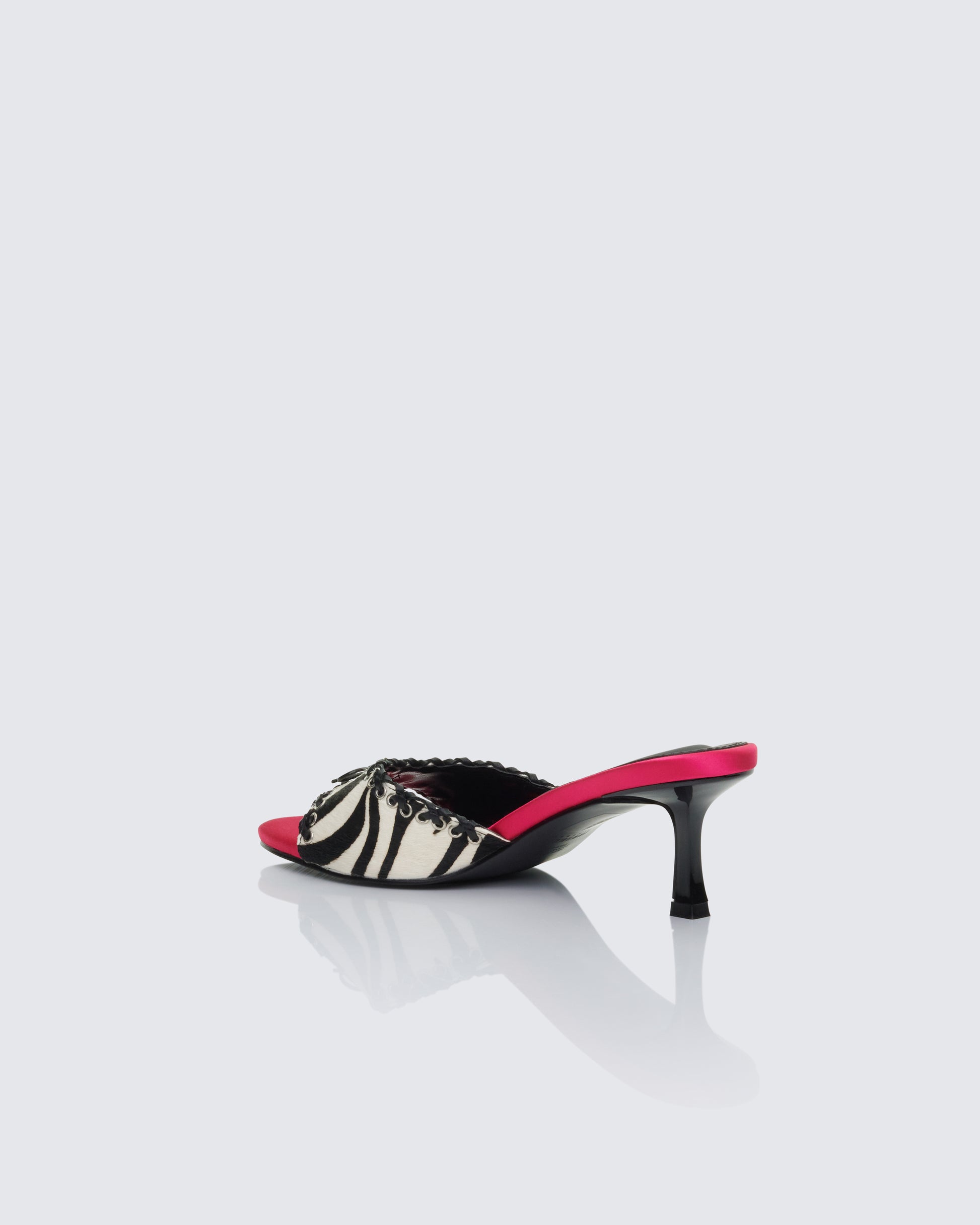 This kitten heel didn’t come to play 😜 With real zebra leather cowhide, whipstitch edges, and a pop of hot pink, these heels know how to take a walk on the wild side and make it chic 🖤