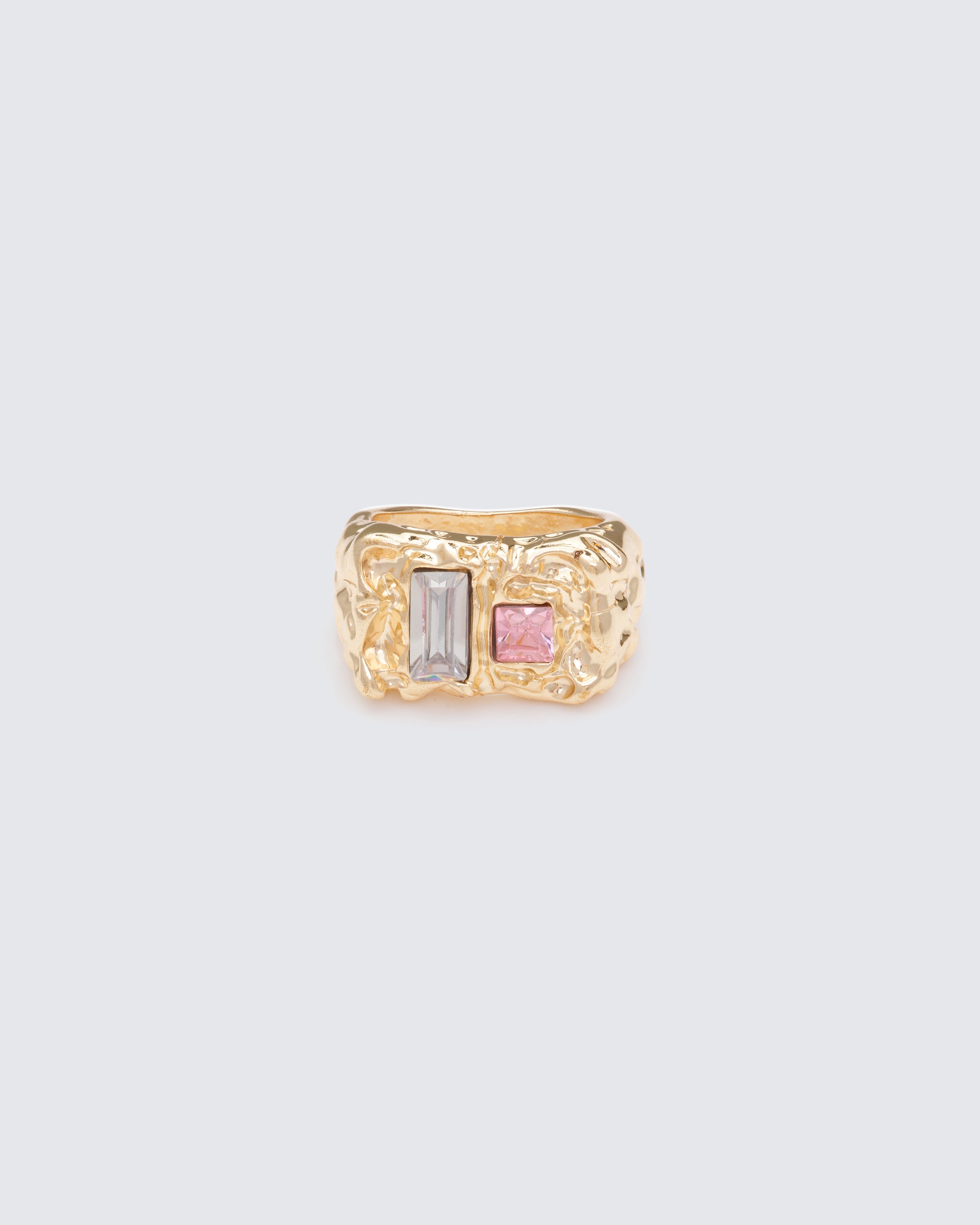Heat on your hand, drama at your fingertips 🔥 A molten gold ring design featuring two jewels -  this ring doesn’t whisper main character, it screams it 💋