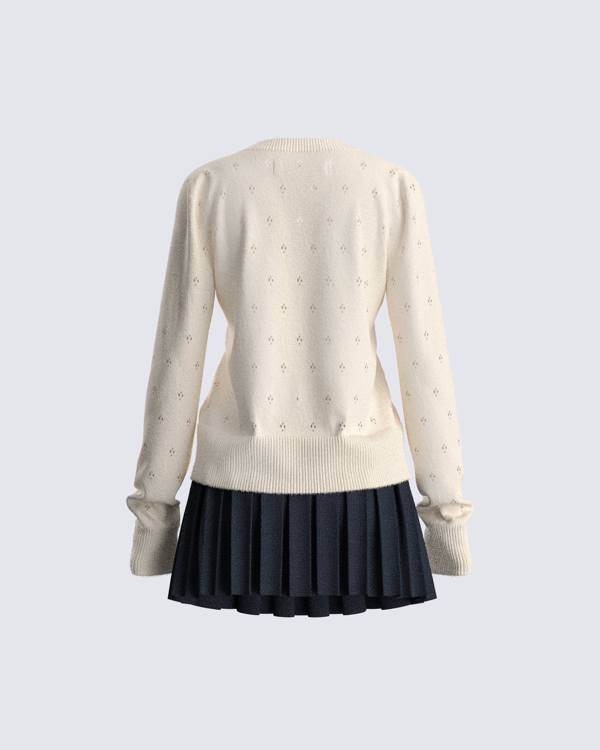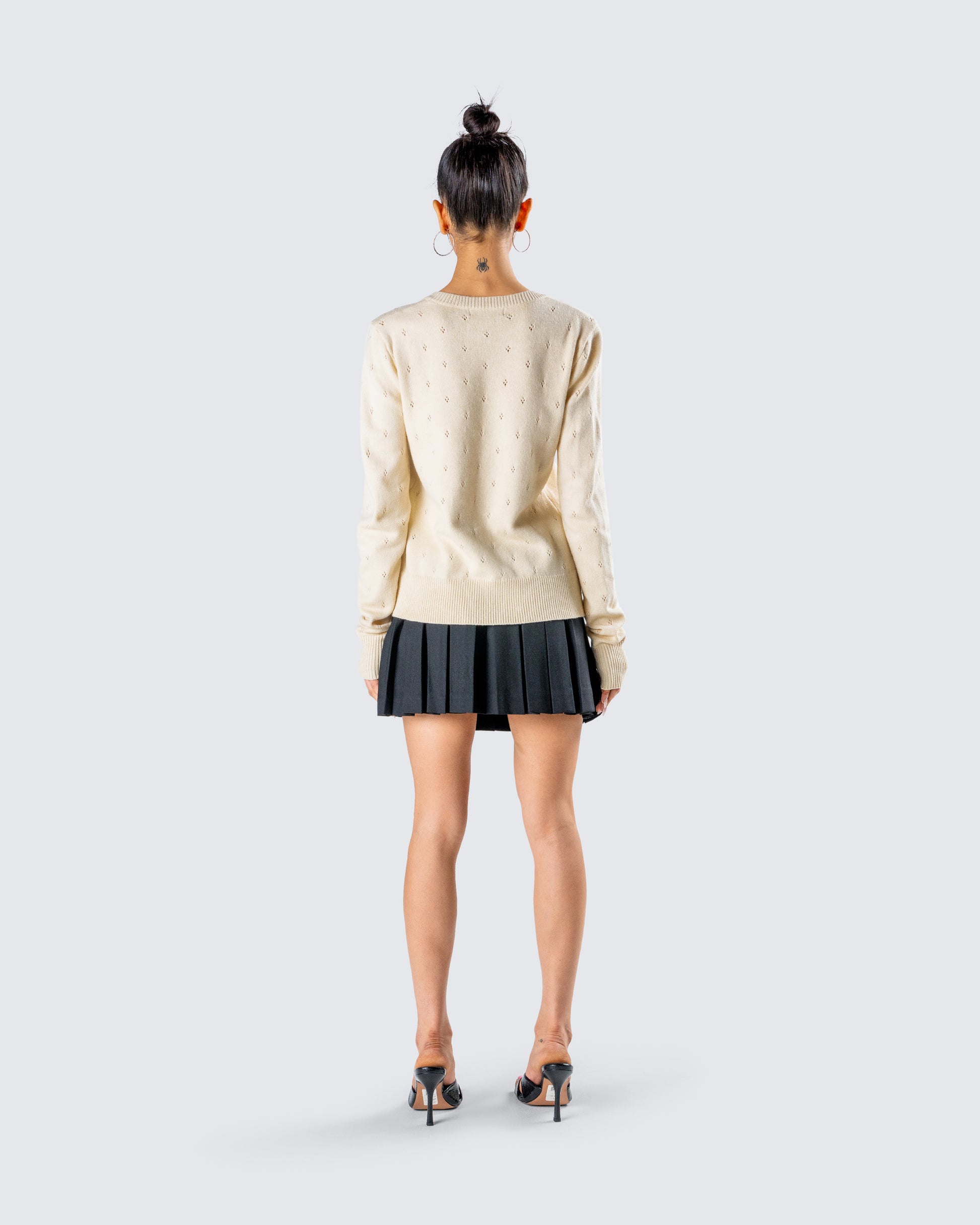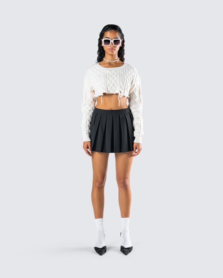 Cute, cozy, and chic - this two-piece set is serving sweet but sassy vibes 🙌 Featuring an ivory sweater knit cardigan, paired with a black mini skirt for the perfect everyday kind of look 🤍